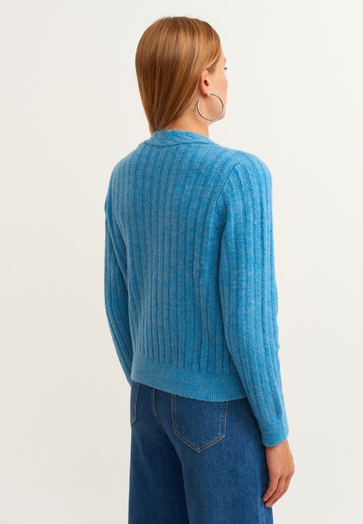 • Bayan Mavi Düğmeli Kruvaze Detaylı Kazak