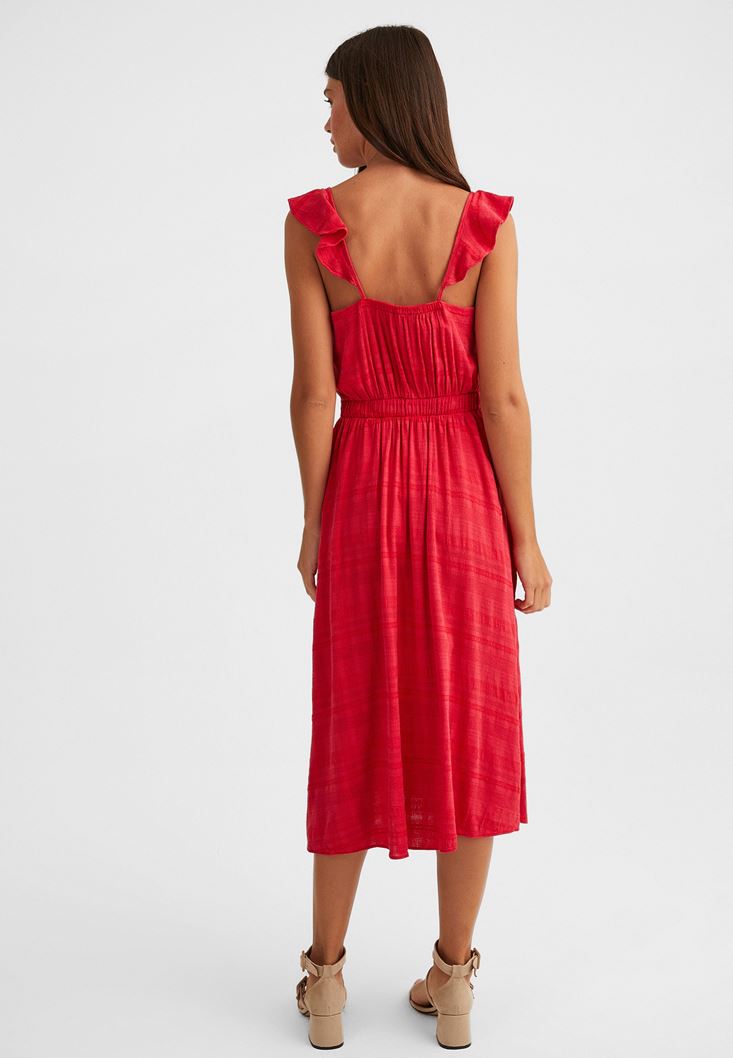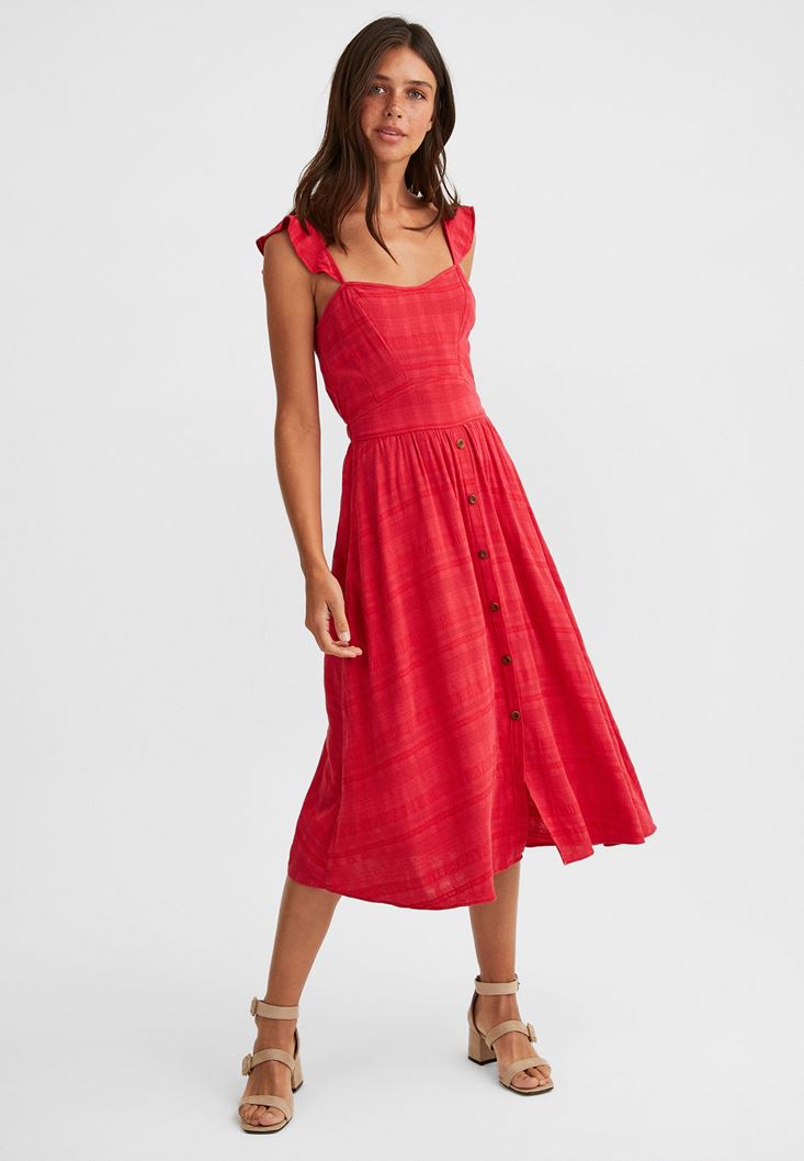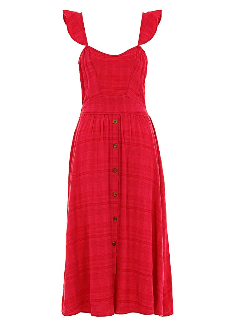 • Bayan Kırmızı Düğmeli Midi Elbise