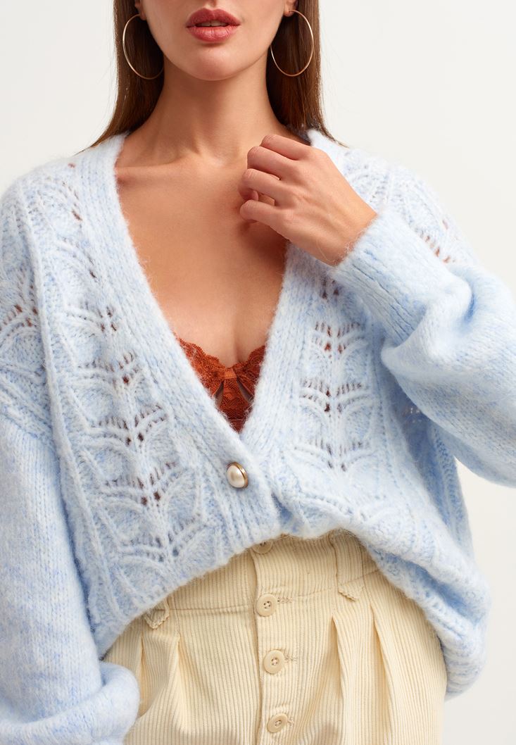 Yumuşacık dokulu bu örgü hırka ile tanışma vakti! Örgü oyunlarının hakim olduğu hırka modelinin göz alıcı düğmeleri ile küçük ayrıntıların büyük gücünü keşfedeceksin... Onu ister midi etek ve çizme ikilisiyle birleştirip nostaljiyi yakala, ister skinnylerle ve crop toplarla buluşturup casual kombinler yarat... Örgü hırka ile dilediğin kombini yaparak hafta sonu davetlerine veya arkadaş buluşmalarına dahil ol! :)