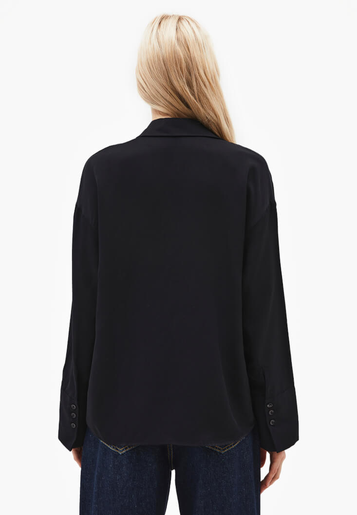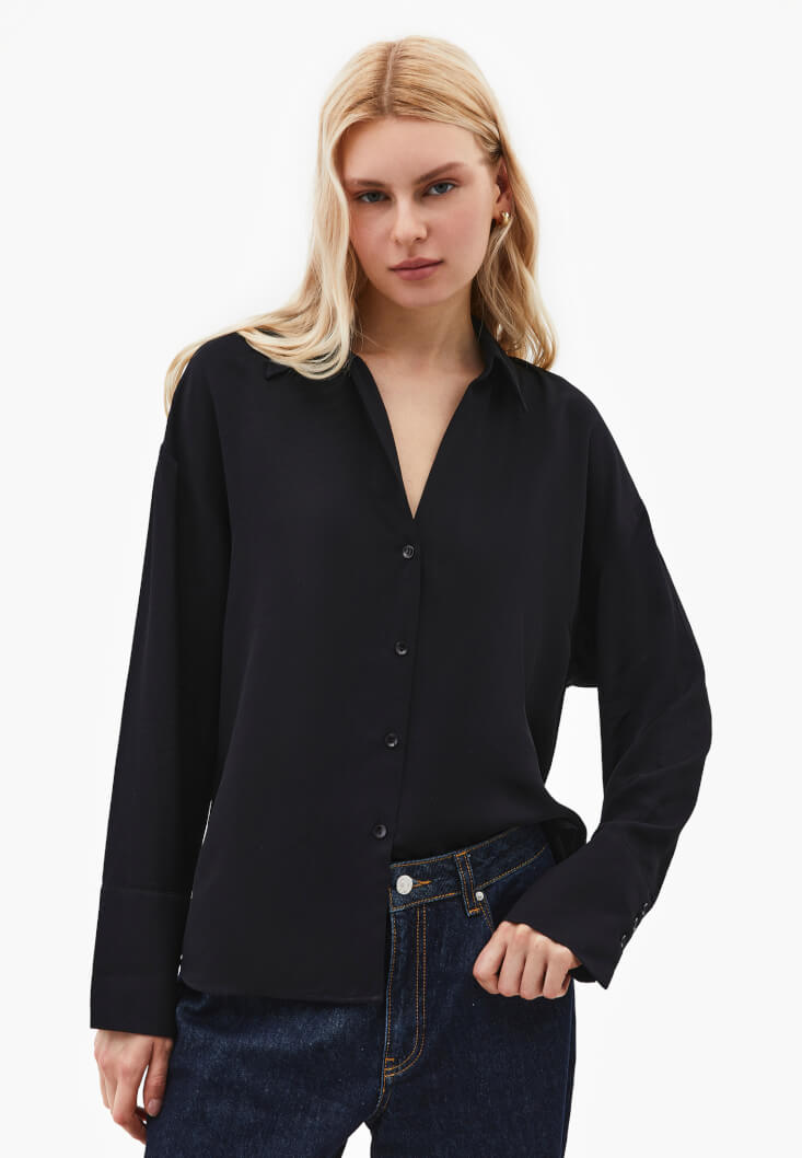 • Bayan Siyah Düğmeli Saten Gömlek