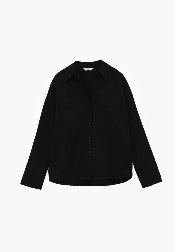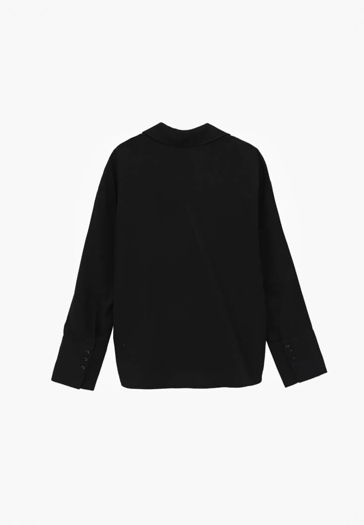 Siyah Düğmeli Saten Gömlek