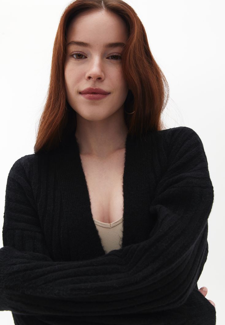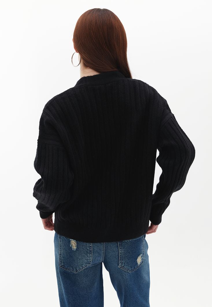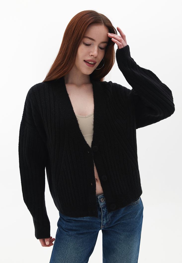 Siyah Düğmeli Triko Hırka