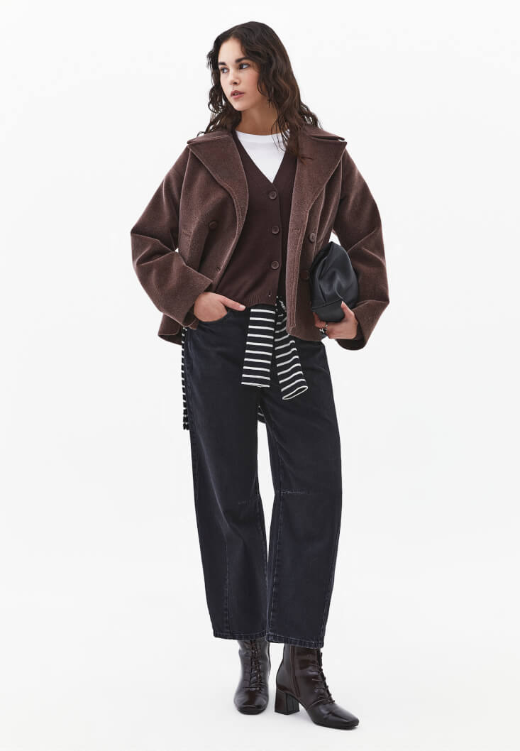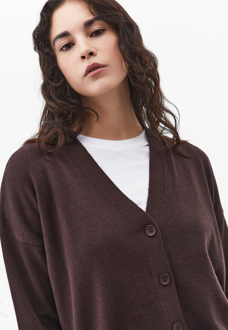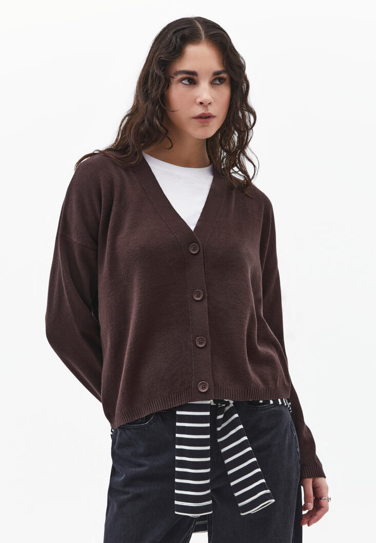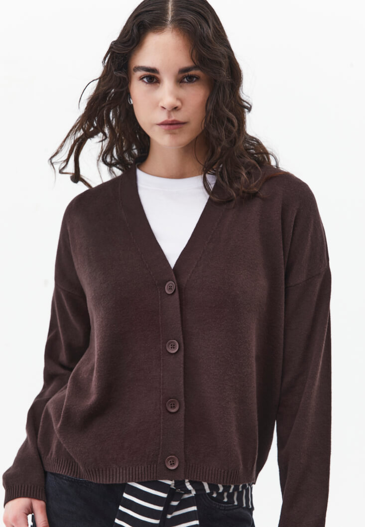 • Bayan Kahverengi Düğmeli Triko Hırka