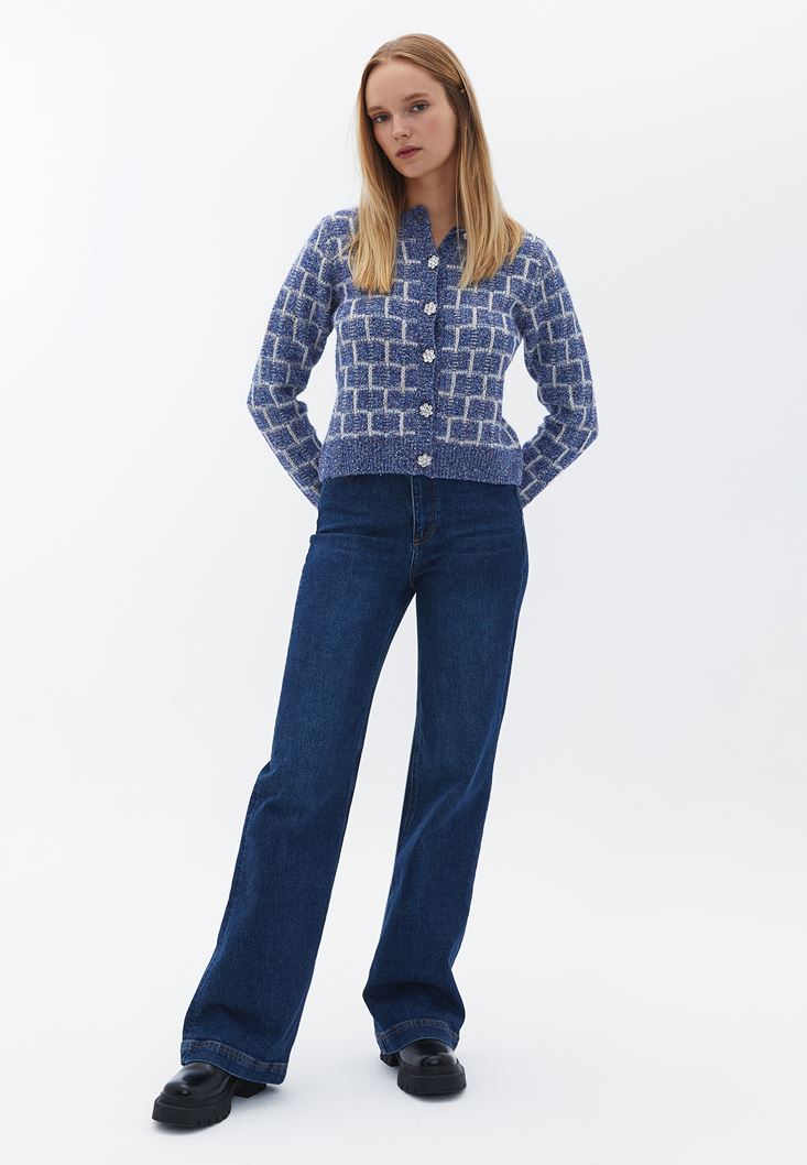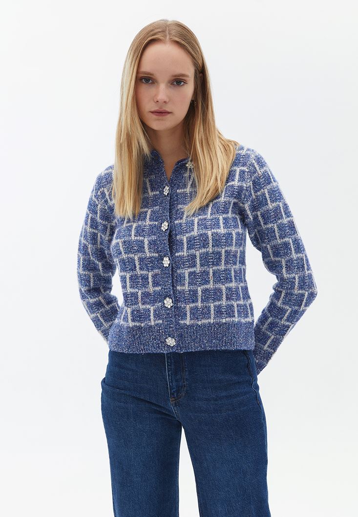 Mavi Düğmeli Tüvit Hırka