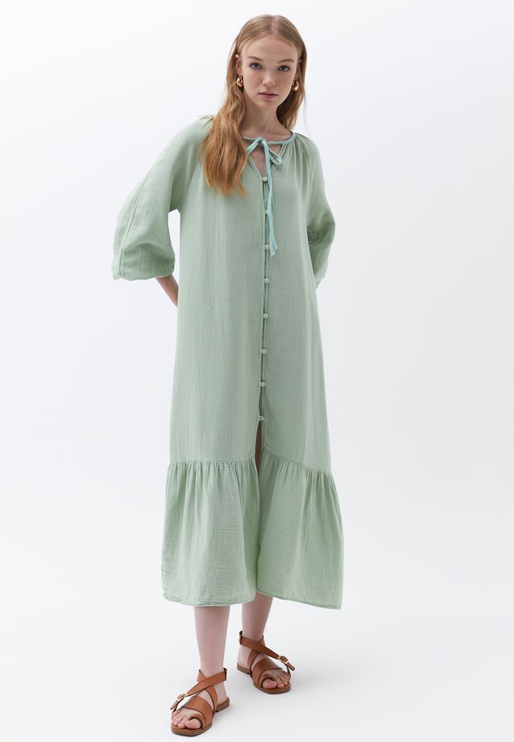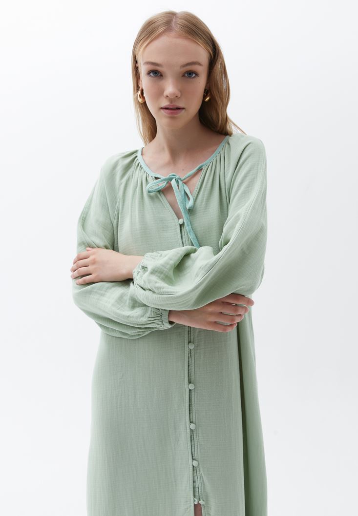 • Bayan Yeşil Düğmeli Uzun Kimono  ( TENCEL™ )