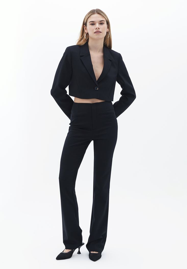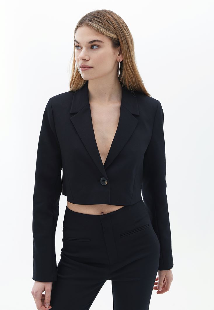 • Bayan Siyah Düğmeli ve Crop Blazer Ceket