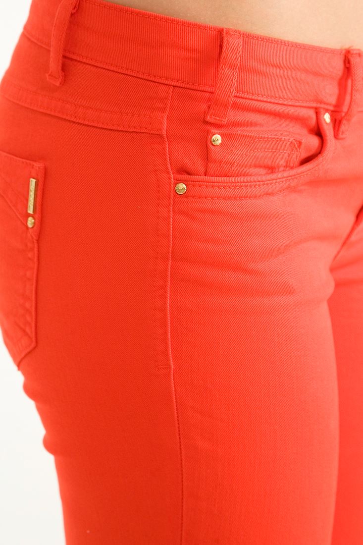 • Bayan Kırmızı Düşük Bel Boru Paça Pantolon