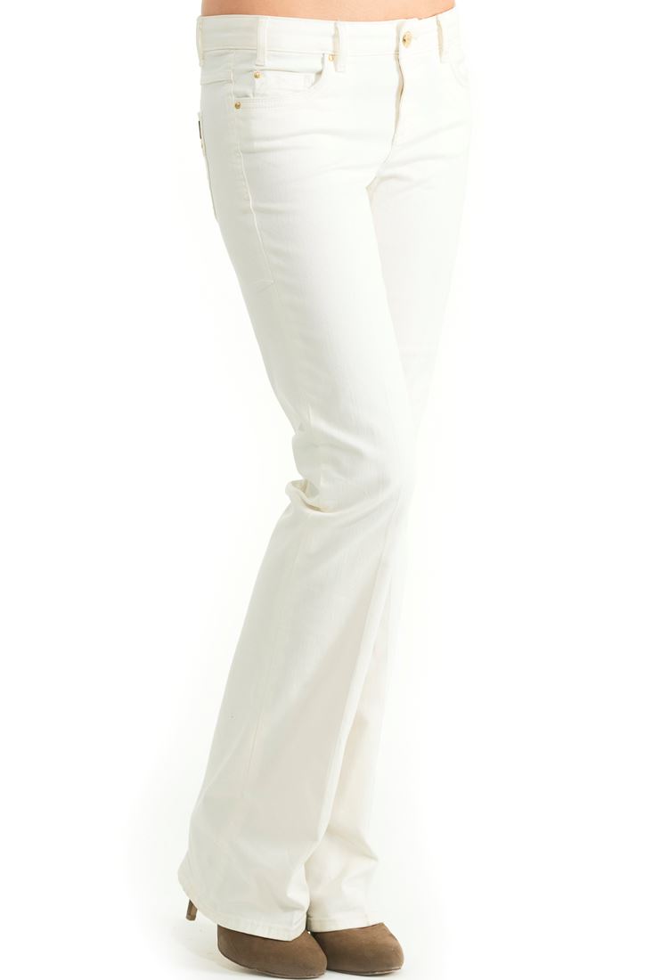• Bayan Krem Düşük Bel Boru Paça Pantolon