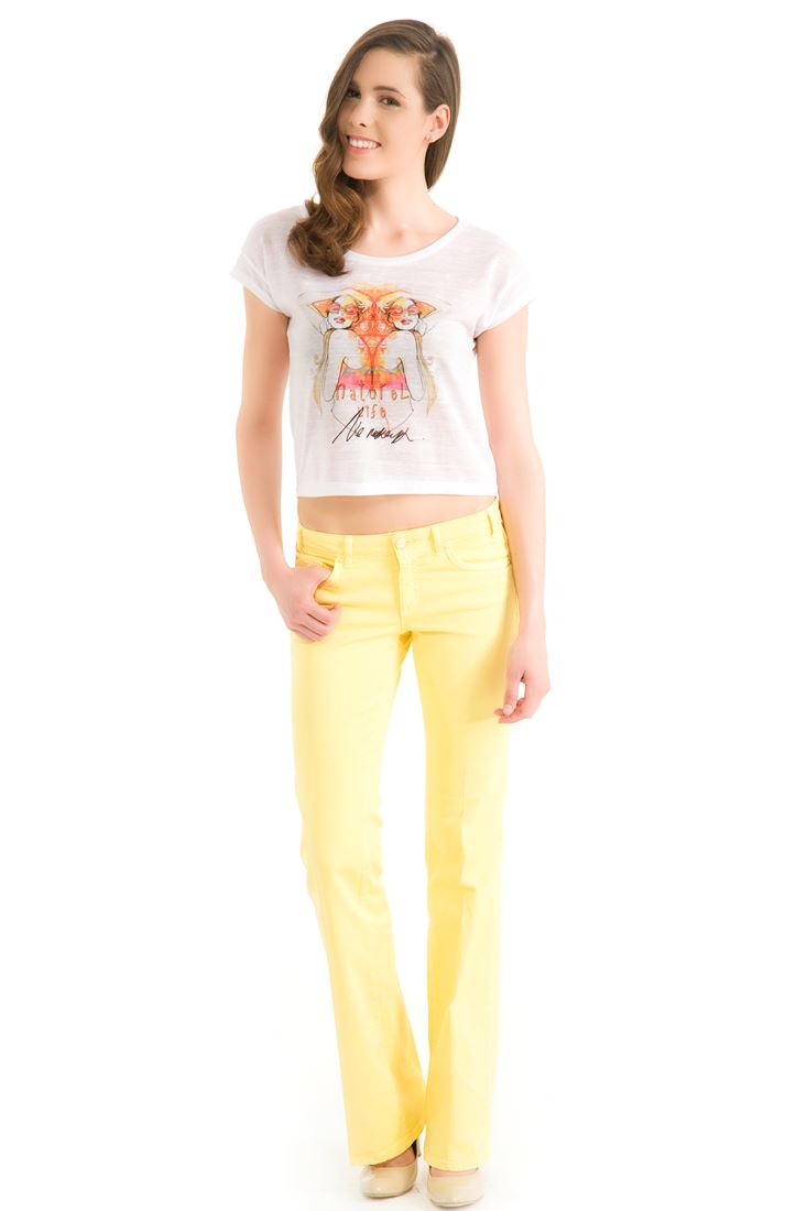 • Bayan Sarı Düşük Bel Boru Paça Pantolon