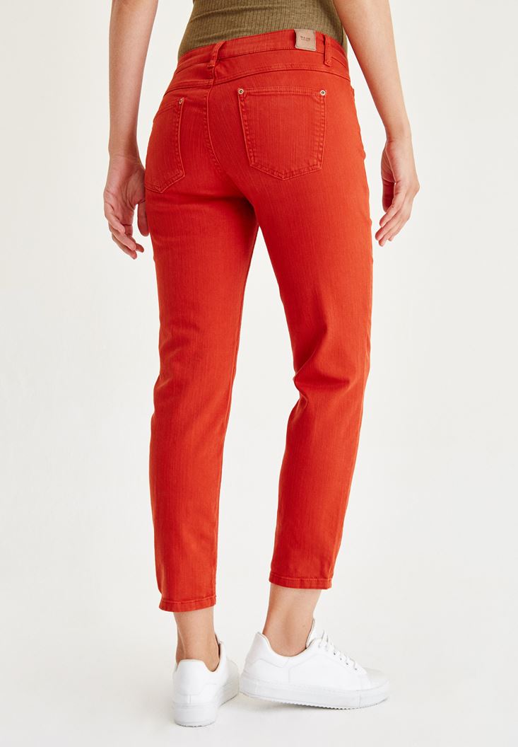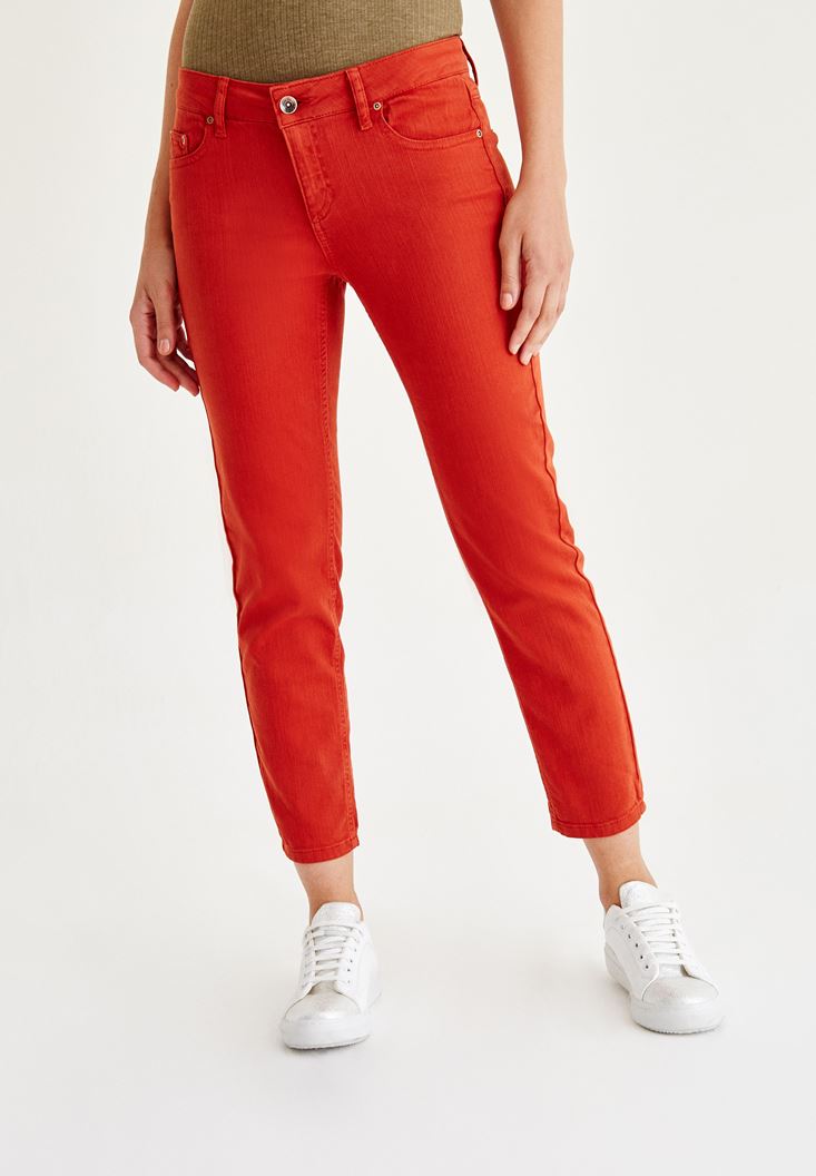 • Bayan Kırmızı Düşük Bel Boru Paça Pantolon