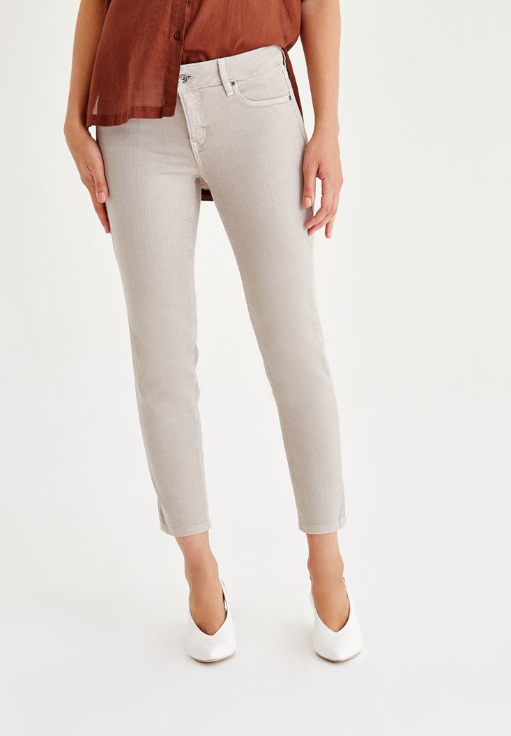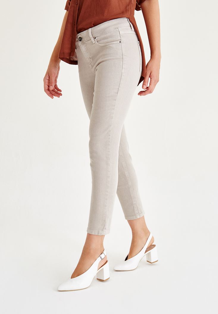 • Bayan Krem Düşük Bel Boru Paça Pantolon