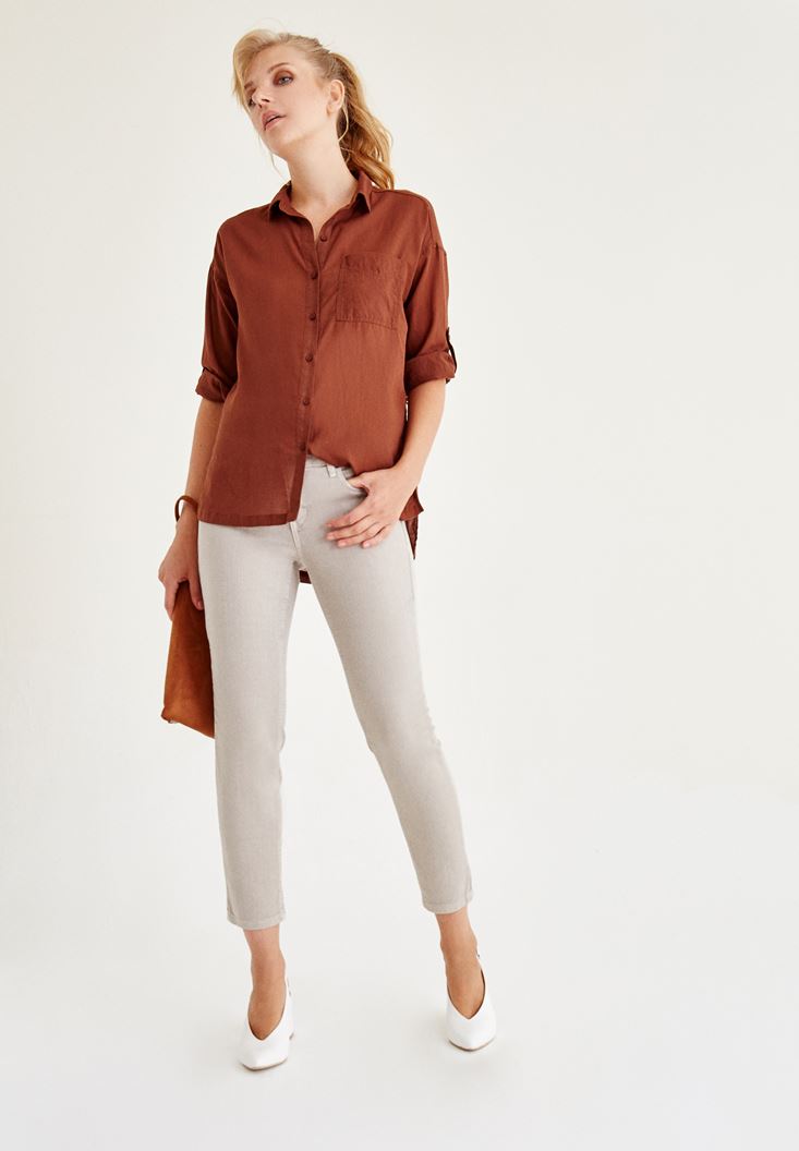 OXXO boru paça pantolon modelimiz düsük bel tercih edenlerin favorisi olacak. Rahat kesimi ve durusu ile günlük kombinlerinizde istediginiz havayi bu pantolonlar ile kolayca yakalayacaksiniz. Ayak bileginizin üzerinde biten bu pantolunumuzu kivirmaniza gerek kalmadan kisa bir sekilde kullanabilecek ayakkabilariniz ile sik bir görüntü saglayacaksiniz. Boru paça olusu sayesinde bacaklariniz rahat olacak ve gün boyu pantolon yokmus gibi hissedeceksiniz. Ayni zamanda gün içerisinde bollasma yapmayacak ve ilk giydiginiz hali ile tüm gün kullanabileceksiniz. Spor ayakkabilariniz, kisa kollu basic bir tisörtünüz ve bez çantalariniz ile spor bir kombin yapip gün boyu rahatligim ön planda olsun diyebileceginiz gibi, sandaletleriniz, sik bir tisört, kemer ve tercih edeceginiz bir deri çanta ile daha sik bir görüntü de yakalayabilirsiniz.