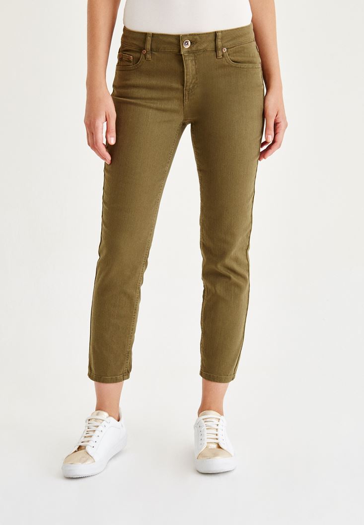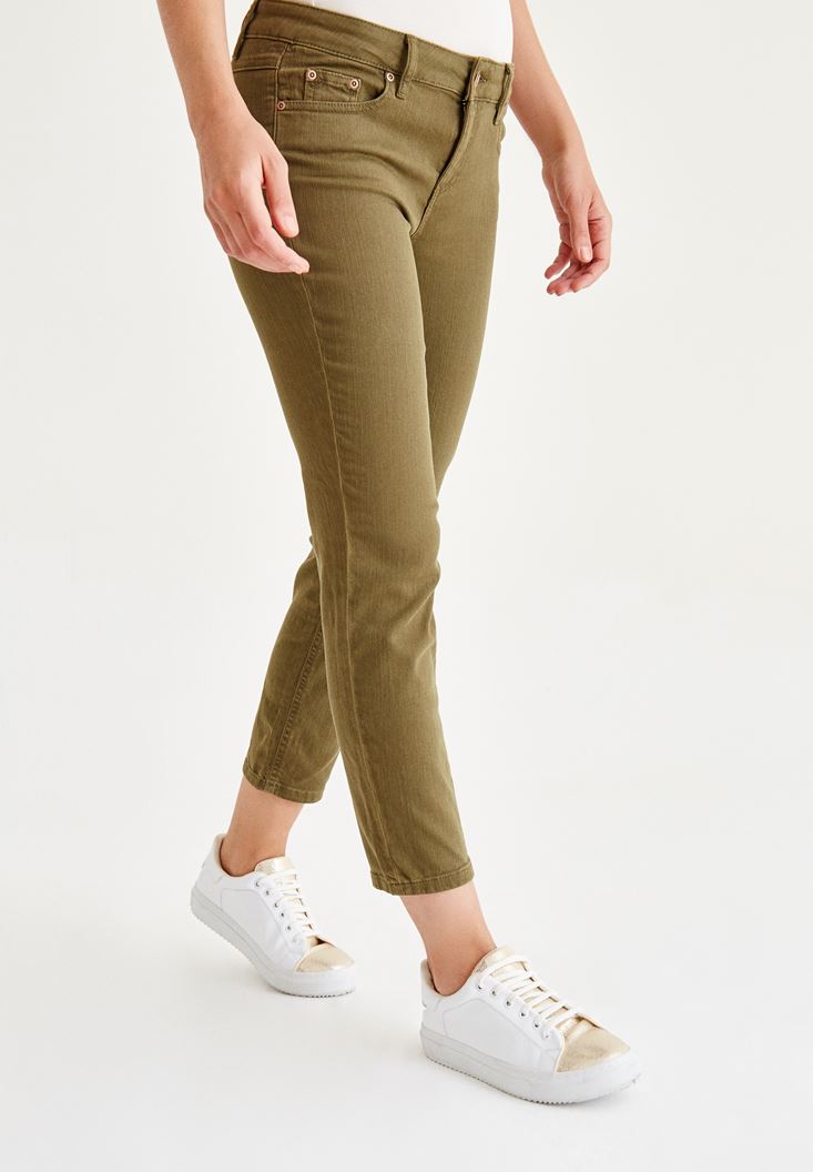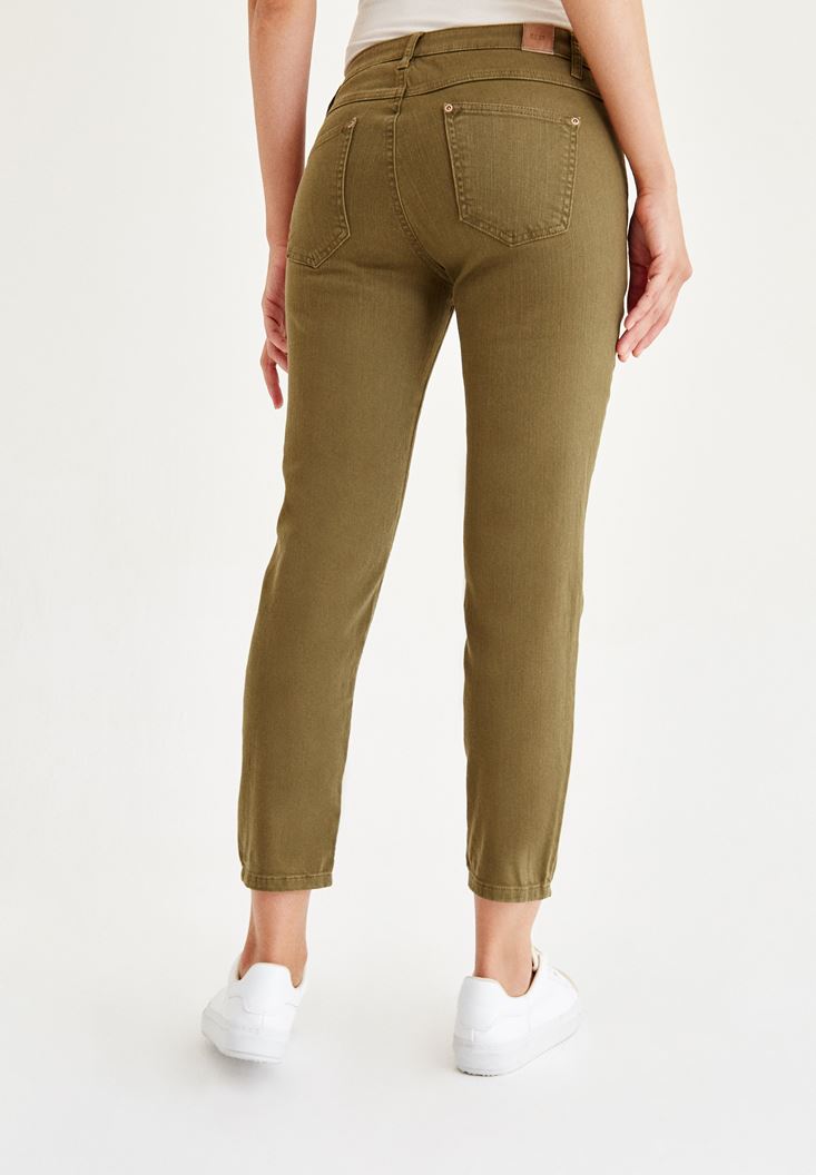 • Bayan Yeşil Düşük Bel Boru Paça Pantolon