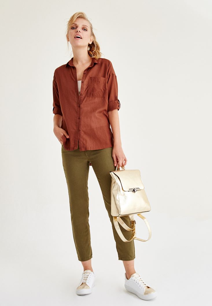 OXXO boru paça pantolon modelimiz düsük bel tercih edenlerin favorisi olacak. Rahat kesimi ve durusu ile günlük kombinlerinizde istediginiz havayi bu pantolonlar ile kolayca yakalayacaksiniz. Ayak bileginizin üzerinde biten bu pantolunumuzu kivirmaniza gerek kalmadan kisa bir sekilde kullanabilecek ayakkabilariniz ile sik bir görüntü saglayacaksiniz. Boru paça olusu sayesinde bacaklariniz rahat olacak ve gün boyu pantolon yokmus gibi hissedeceksiniz. Ayni zamanda gün içerisinde bollasma yapmayacak ve ilk giydiginiz hali ile tüm gün kullanabileceksiniz. Spor ayakkabilariniz, kisa kollu basic bir tisörtünüz ve bez çantalariniz ile spor bir kombin yapip gün boyu rahatligim ön planda olsun diyebileceginiz gibi, sandaletleriniz, sik bir tisört, kemer ve tercih edeceginiz bir deri çanta ile daha sik bir görüntü de yakalayabilirsiniz.