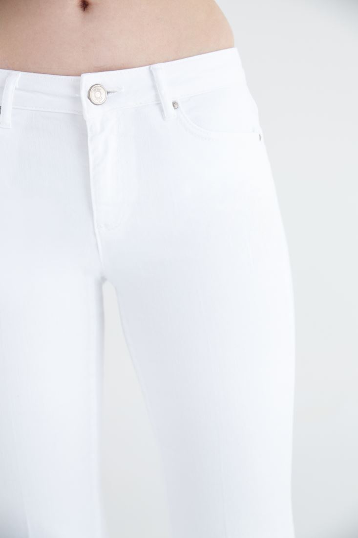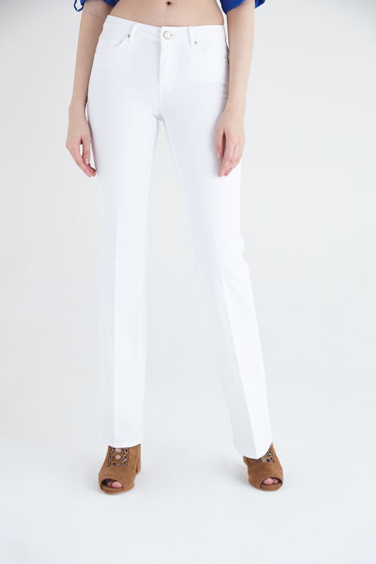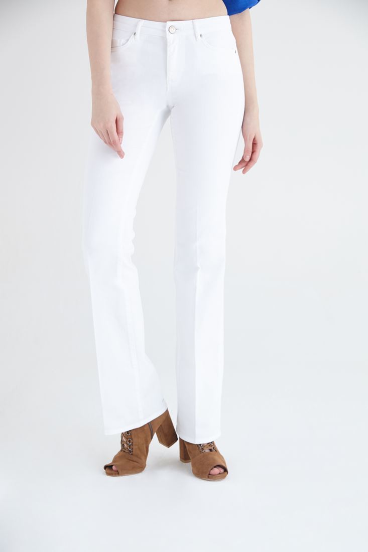 • Bayan Beyaz Düşük Bel Bot Paça Pantolon