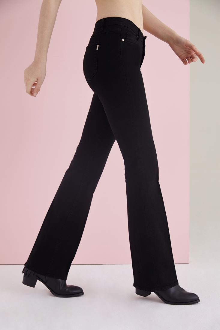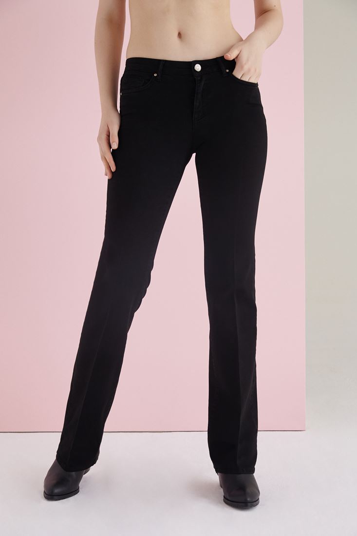 • Bayan Siyah Düşük Bel Bot Paça Pantolon