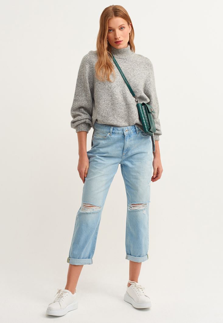 Düşük Bel Boyfriend Denim Pantolon modeli, pamuk içerikli mükemmel dokusu ve rahat kalıbı ile yeni sezona dahil oluyor. Boyfriend pantolon modeli, düşük belli yapısı ve diz kısmındaki yırtık detayları ile Oxxo'da karşınıza çıkıyor. Düşük bel pantolon modeli, günlük kombinlerinize etkileyici detaylar katabilmeniz için ideal bir seçenek oluyor. Kazaklarla veya oversize tişörtlerle birlikte kullanabileceğiniz boyfriend pantolon modelini dolabınızın favorilerine ekleyebilirsiniz. Salaş görünüme ulaşabileceğiniz düşük bel pantolon modelinin yanında yüksek tabanlı sneakerlar tercih edebilirsiniz. Oxxo'nun benzersiz detaylarla ve vazgeçilmeyen kalıplarla sizlere sunduğu boyfriend pantolon modelleri ile her ortamda tüm dikkatleri üzerinize çekebilirsiniz.