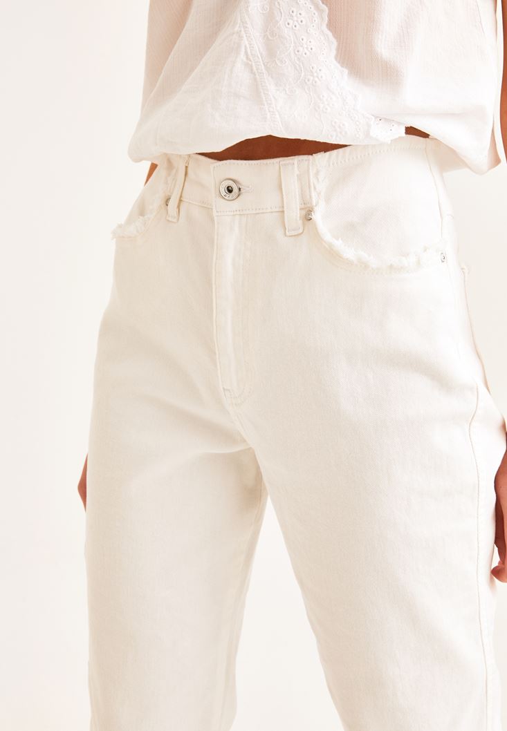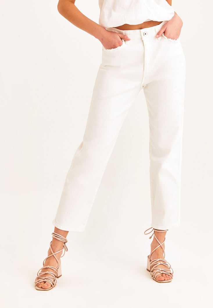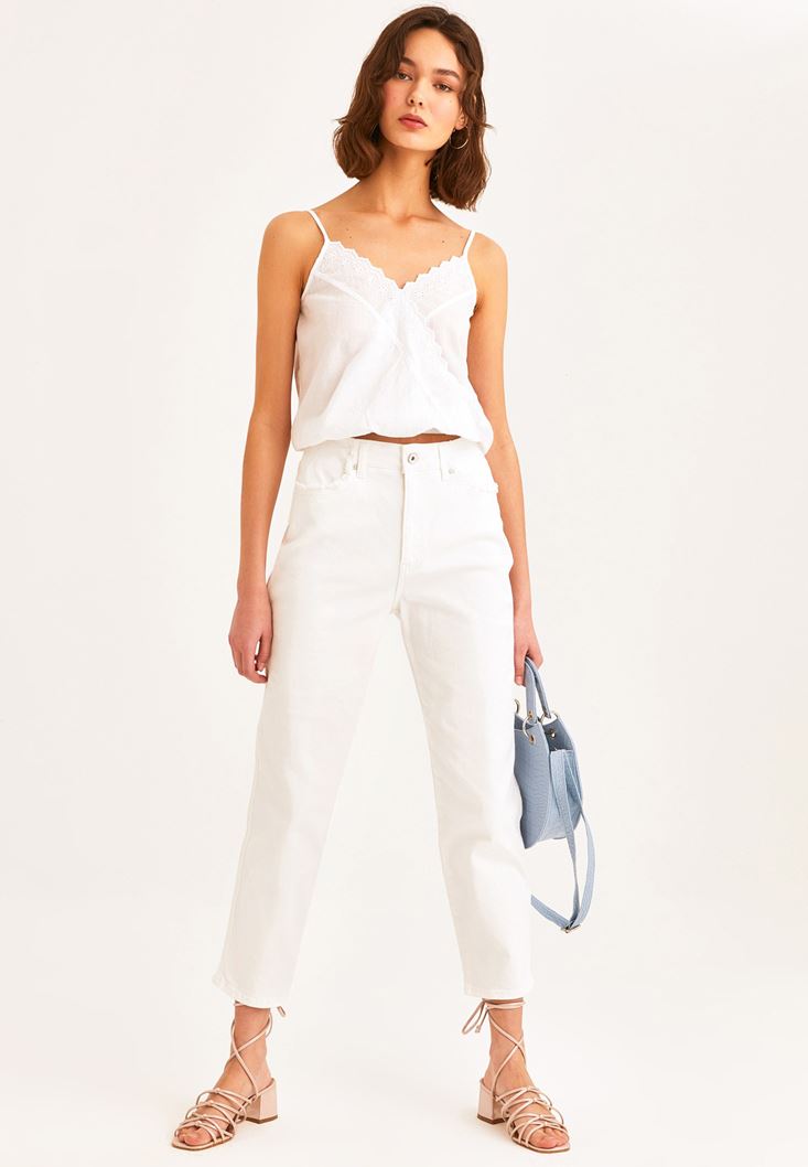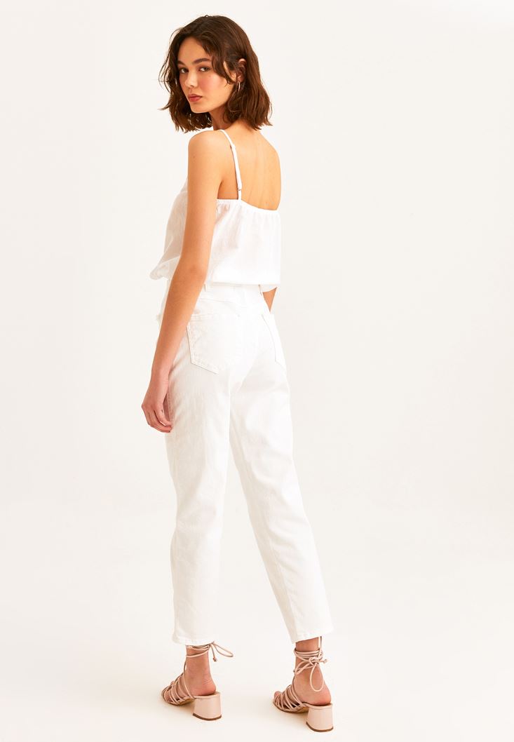• Bayan Beyaz Düşük Bel Boyfriend Pantolon