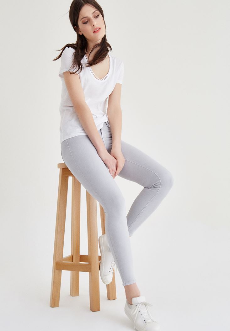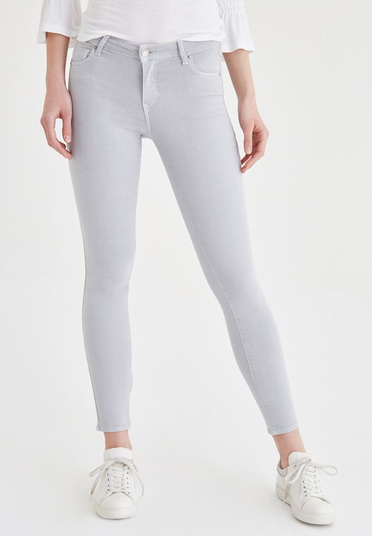 • Bayan Gri Düşük Bel Dar Paça Pantolon