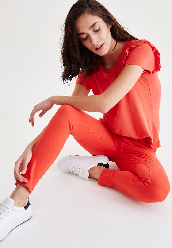• Bayan Kırmızı Düşük Bel Dar Paça Pantolon