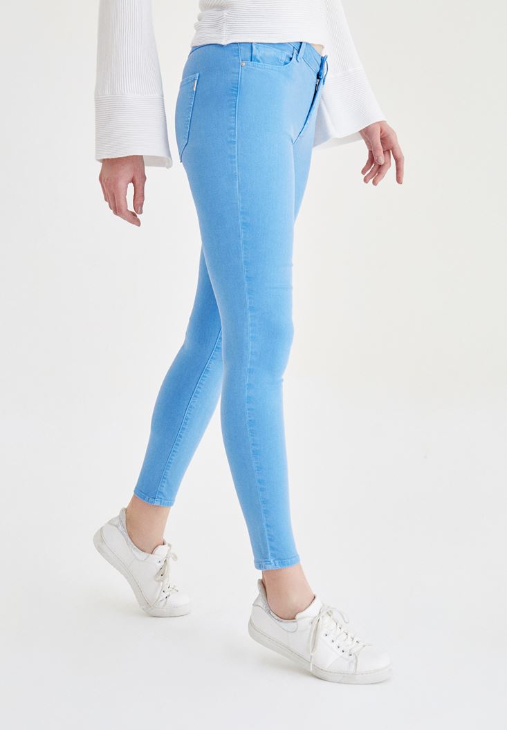 • Bayan Mavi Düşük Bel Dar Paça Pantolon
