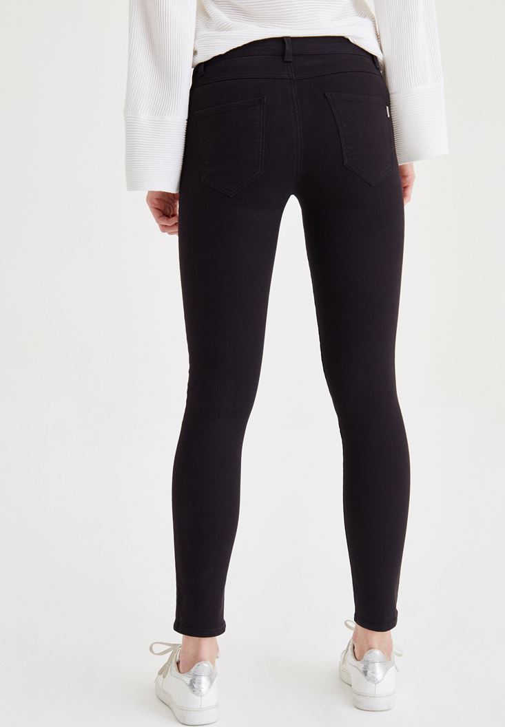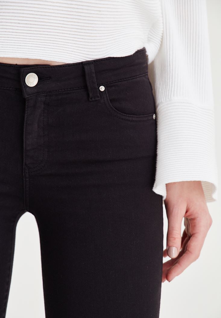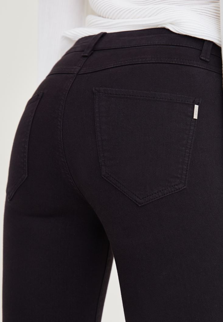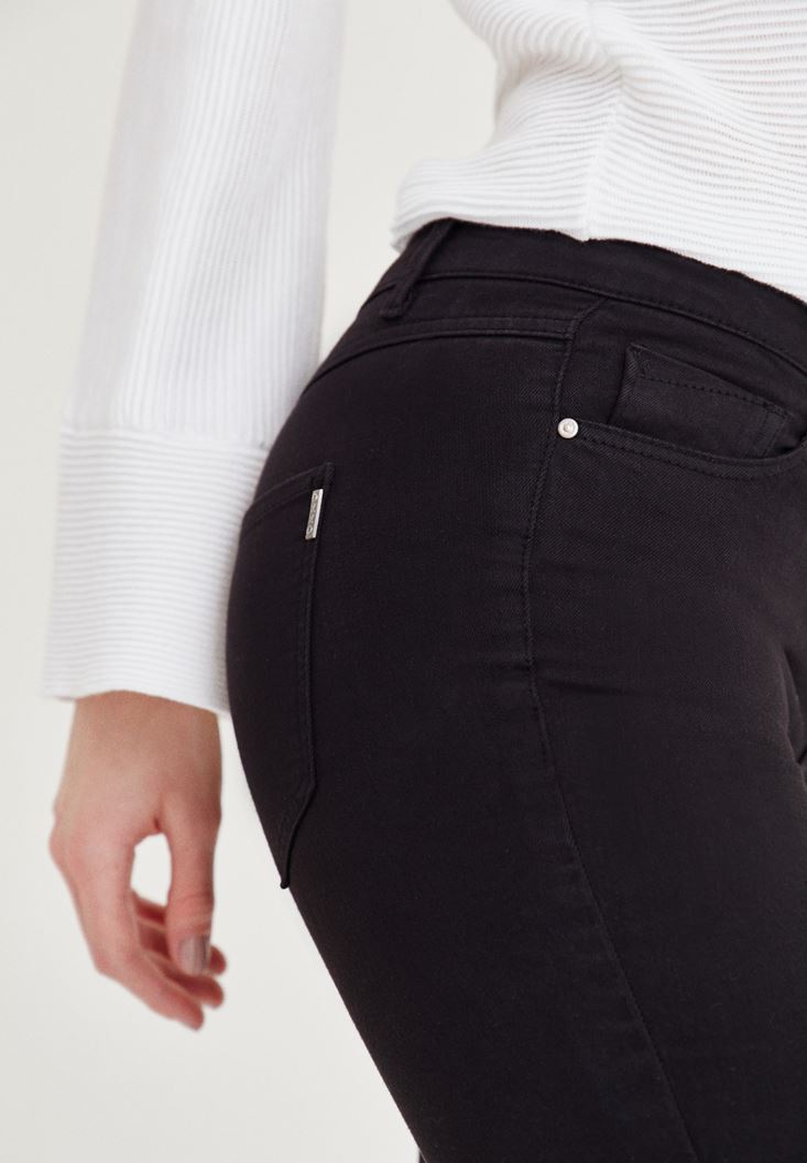 • Bayan Siyah Düşük Bel Dar Paça Pantolon