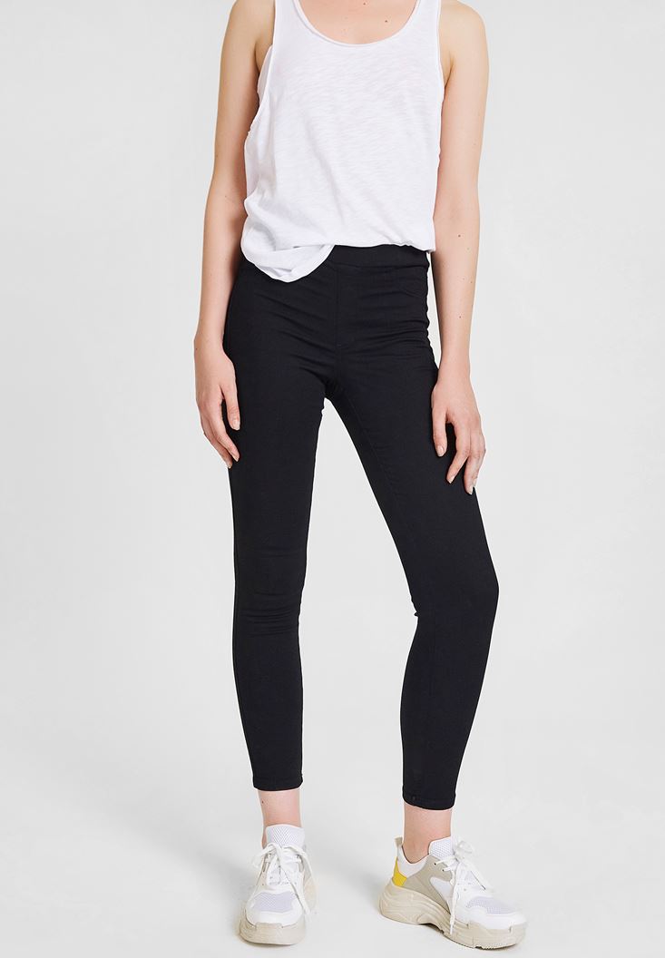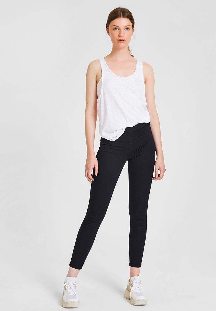 Siyah Düşük Bel Detaylı Tayt Pantolon