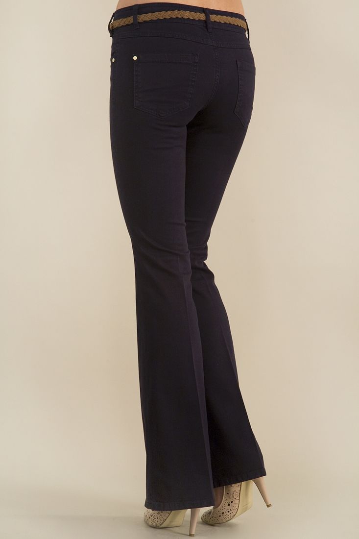 • Bayan Lacivert Düşük Bel İspanyol Paça Pantolon