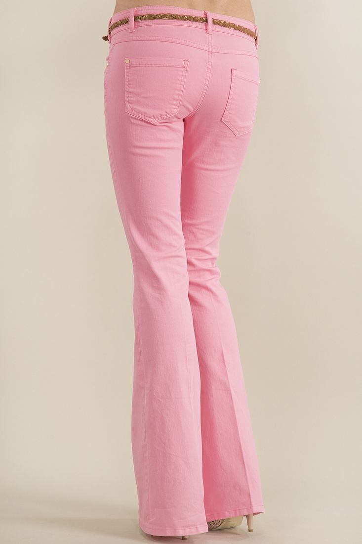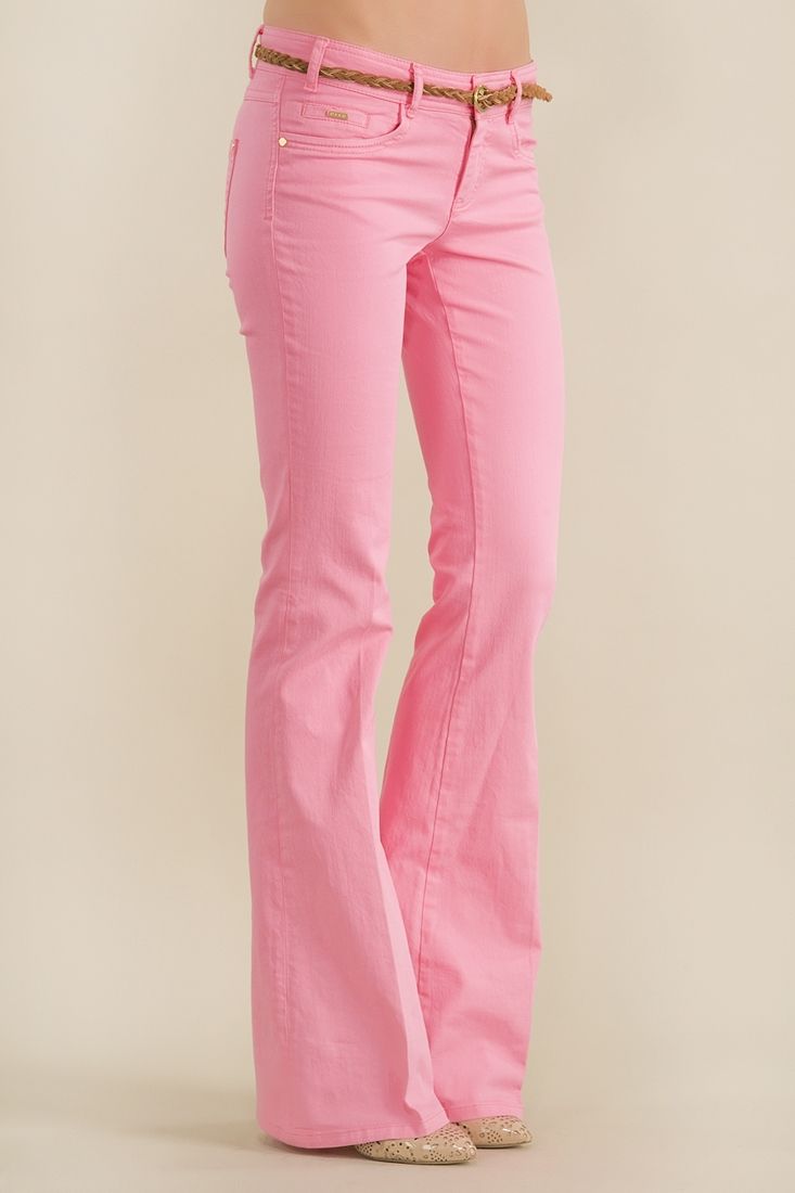 Pembe Düşük Bel İspanyol Paça Pantolon