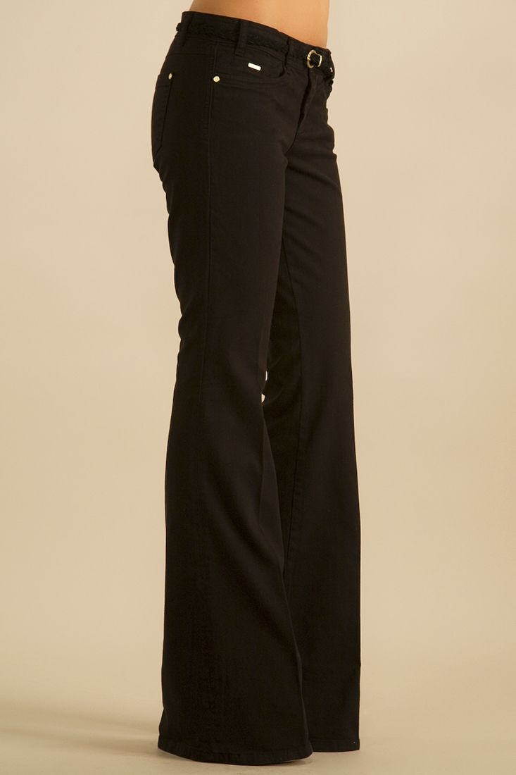 • Bayan Siyah Düşük Bel İspanyol Paça Pantolon