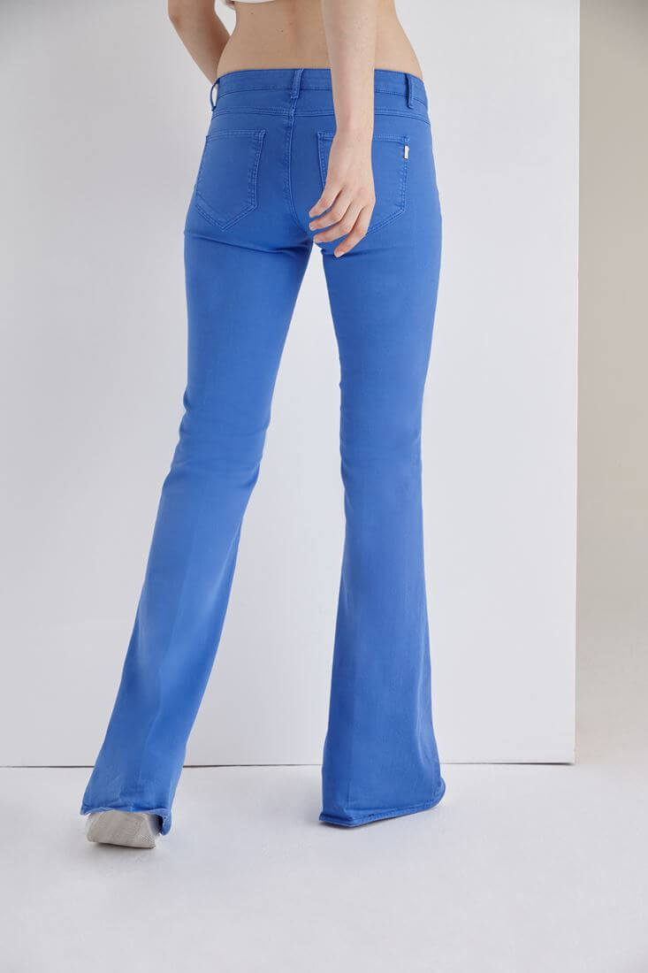Mavi Düşük Bel İspanyol Paça Pantolon