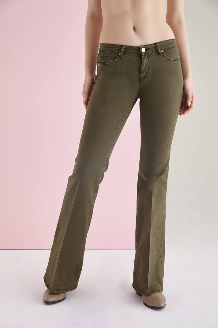 • Bayan Yeşil Düşük Bel İspanyol Paça Pantolon