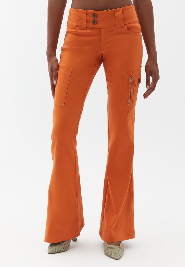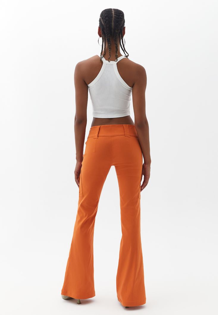 Turuncu Düşük Bel Kargo Cepli Pantolon