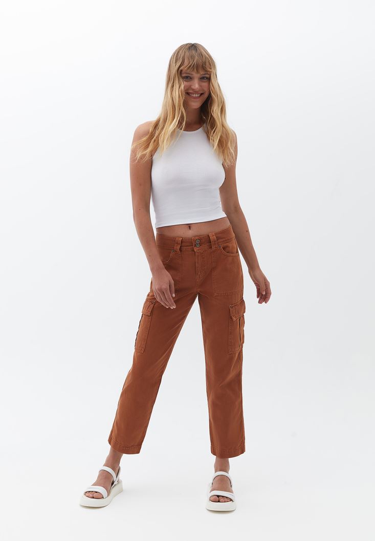 • Bayan Kahverengi Düşük Bel Kargo Pantolon