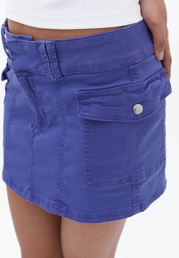 Lila Düşük Bel Kemerli Mini Etek