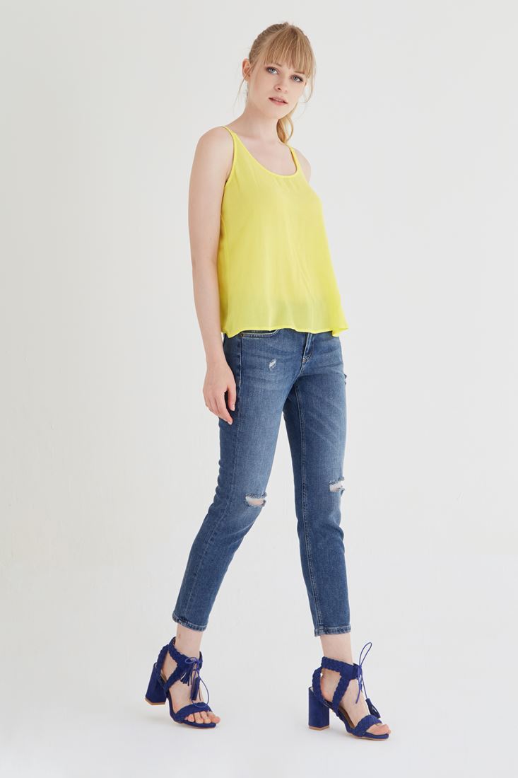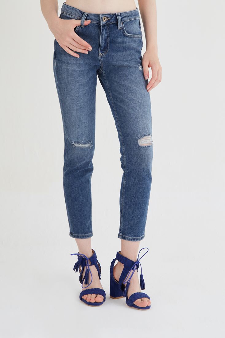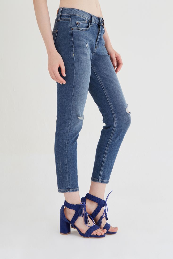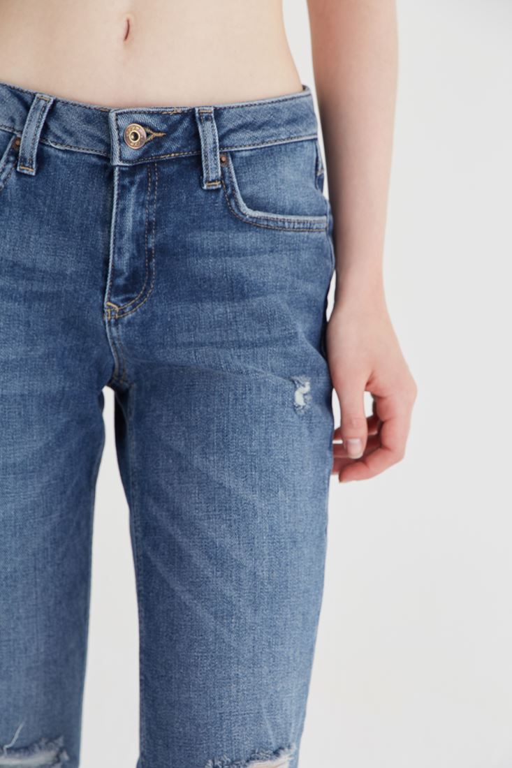 Düşük bel yırtıklı kot pantolon