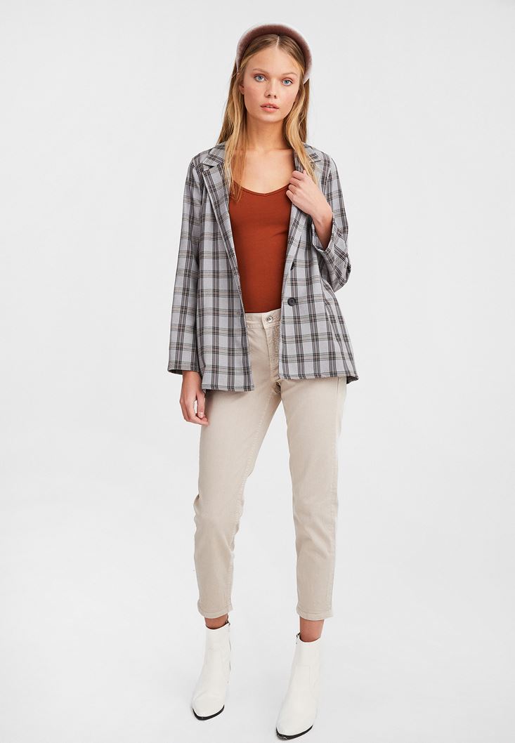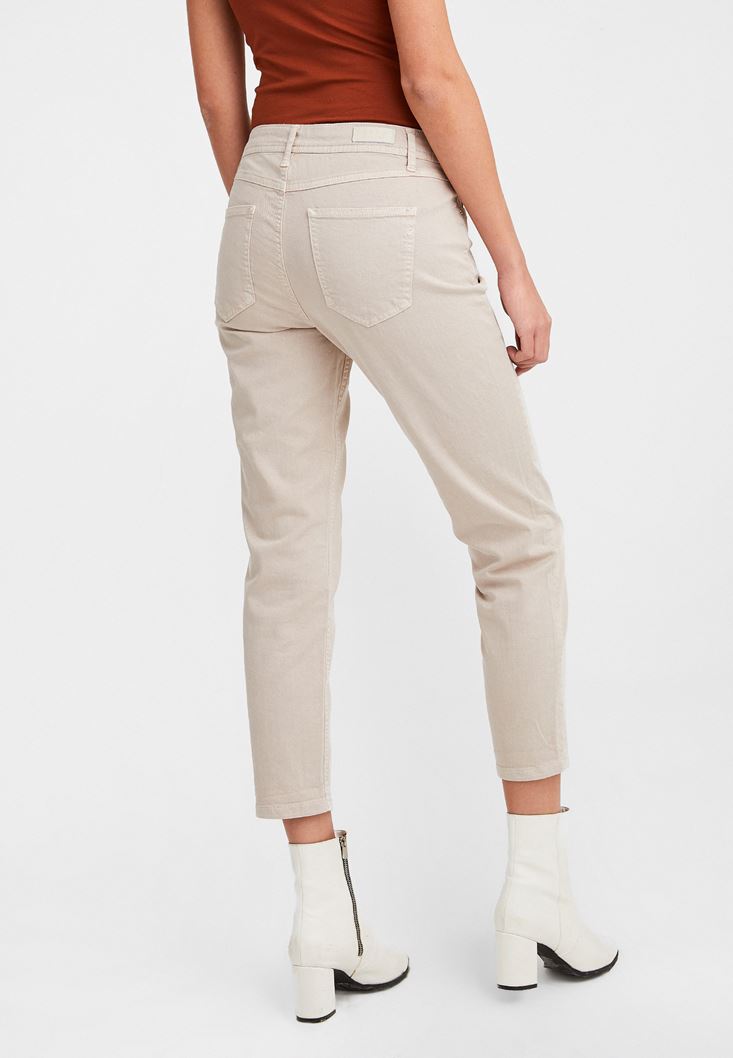 Krem Düşük Bel Slim Boyfriend Pantolon