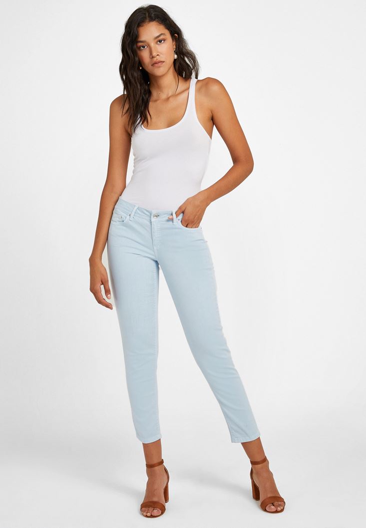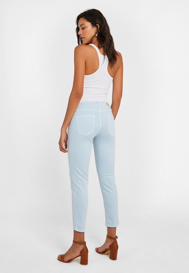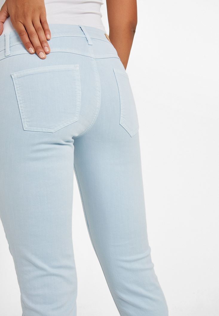 Mavi Düşük Bel Slim Boyfriend Pantolon