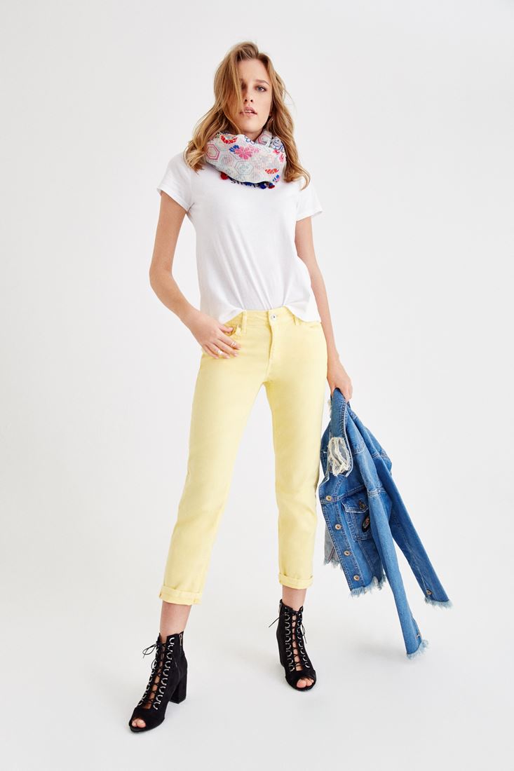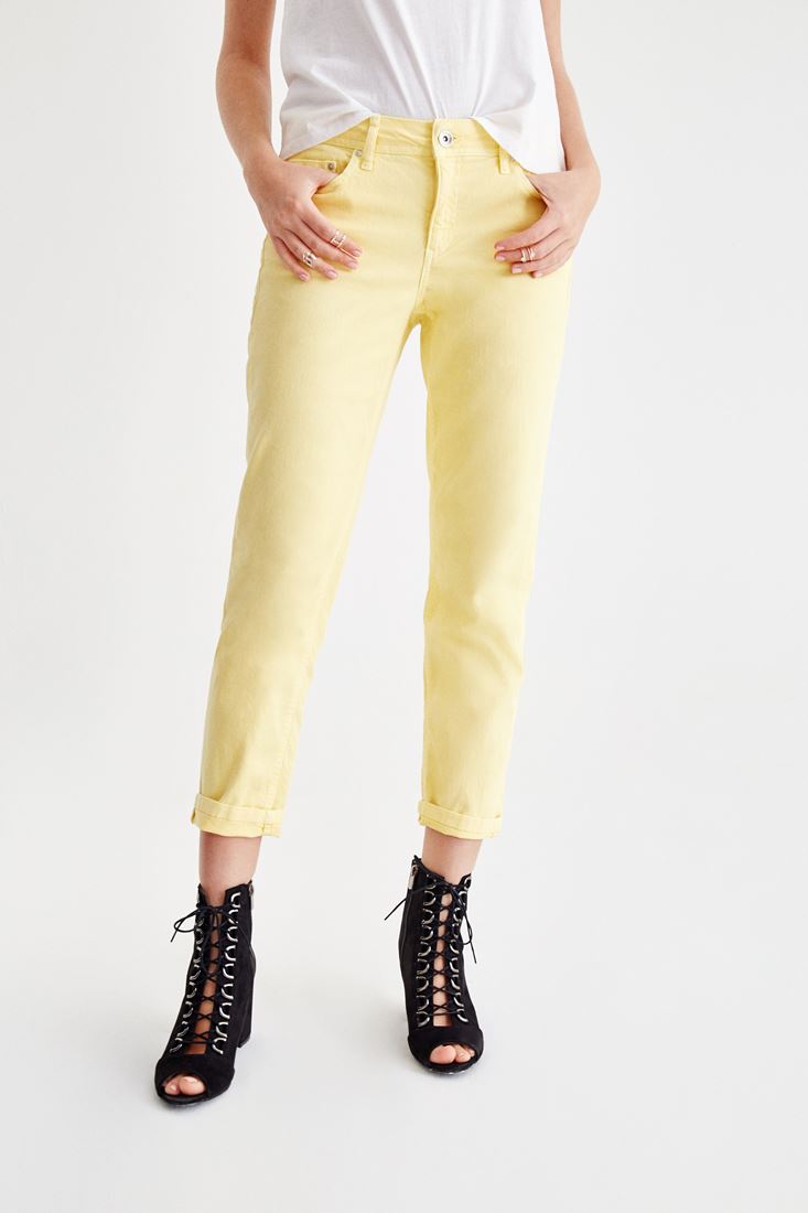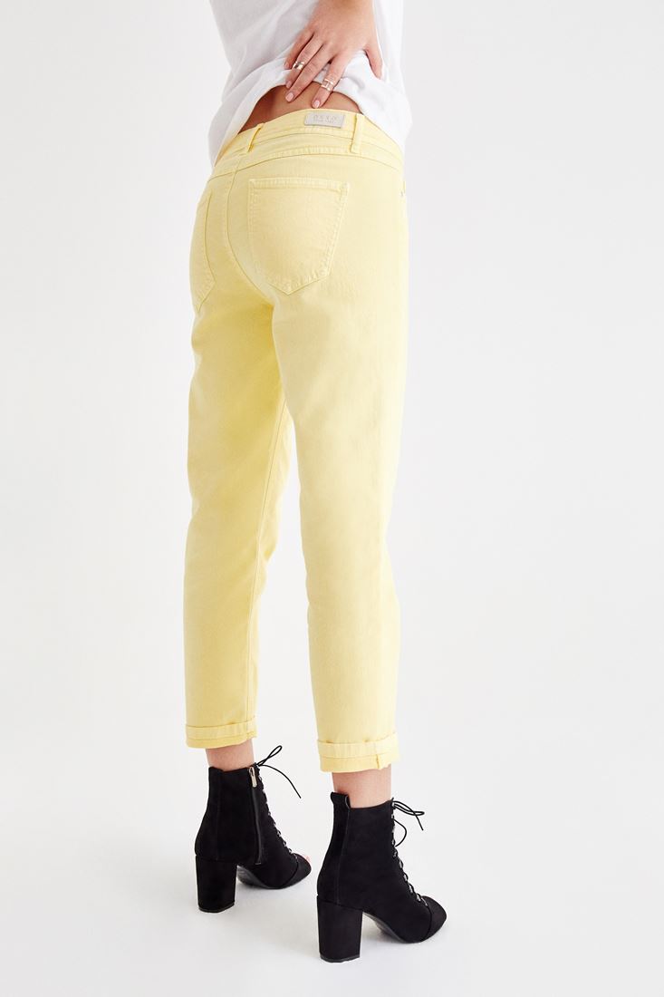 • Bayan Sarı Düşük Bel Slim Boyfriend Pantolon