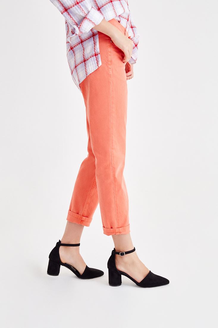 • Bayan Turuncu Düşük Bel Slim Boyfriend Pantolon