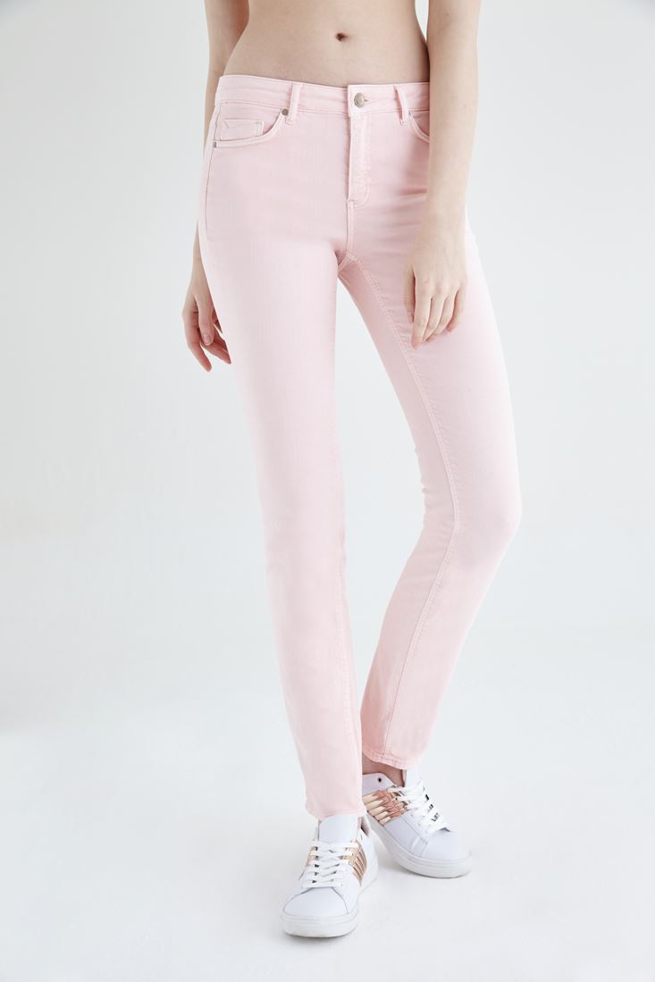 • Bayan Pembe Düşük Bel Slim Paça Pantolon