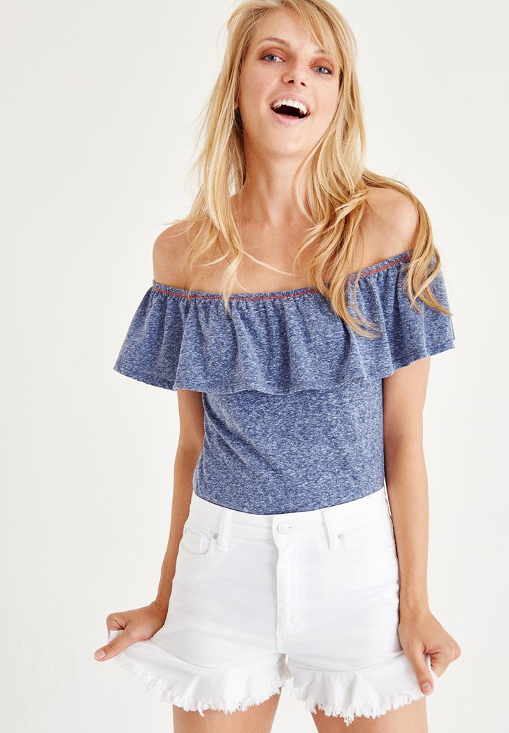 Son yillarin trendleri arasinda firfir bulunuyor! Bu bluzumuz hem firfirli hem de düsük omuzlari ile trend bir görüntünüz olmasini saglayacak. OXXO düsük omuz bluz sikliginiza siklik katacak! Yüksek bel jean sortlarinizin içine sokarak giyebileceginiz bu bluzumuzu kolunuza takacaginiz bileklikler ile kombinleyebilir, yüksek sandaletler veya yüksek terlikler ile kullanabilirsiniz. Firfirlar genellikle hareketliligi simgeler ve dinamik bir görüntü saglar. Bu bluzumuz ile de dinamik bir sikliginiz olacak ve enerjik bir görüntüye sahip olacaksiniz. Birbirinden farkli pantolonlar, yirtik jeanler, uzun etekler ile birbirinden trend kombinler yapabilir ve modern bir görüntü yakalayabilirsiniz. Jeanleriniz ile kombinleyecek ve civil civil bir görüntü yakalayacaksiniz!