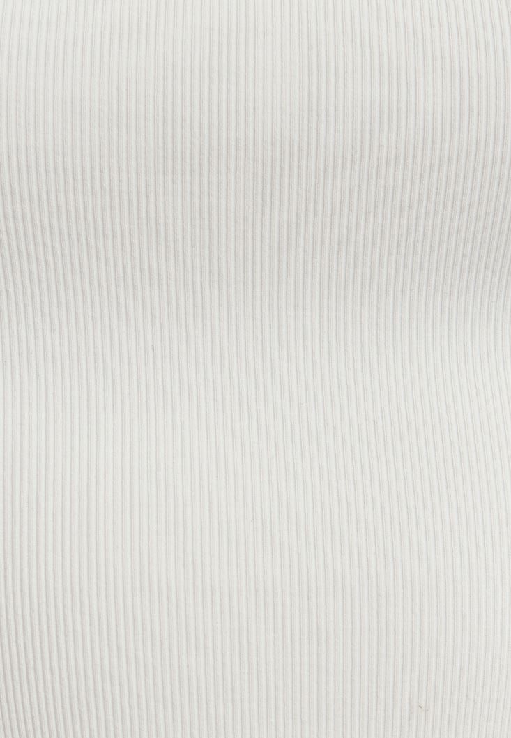 Yumuşak ve esnek özel doku, ön kısmı cut-out detaylı, crop kesim, bedeni saran rahat kalıp, düşük omuz tasarımlı, kısa kollu.
