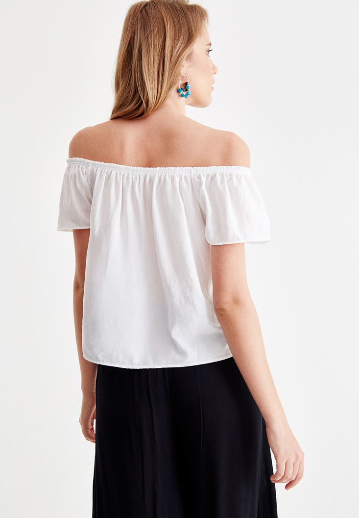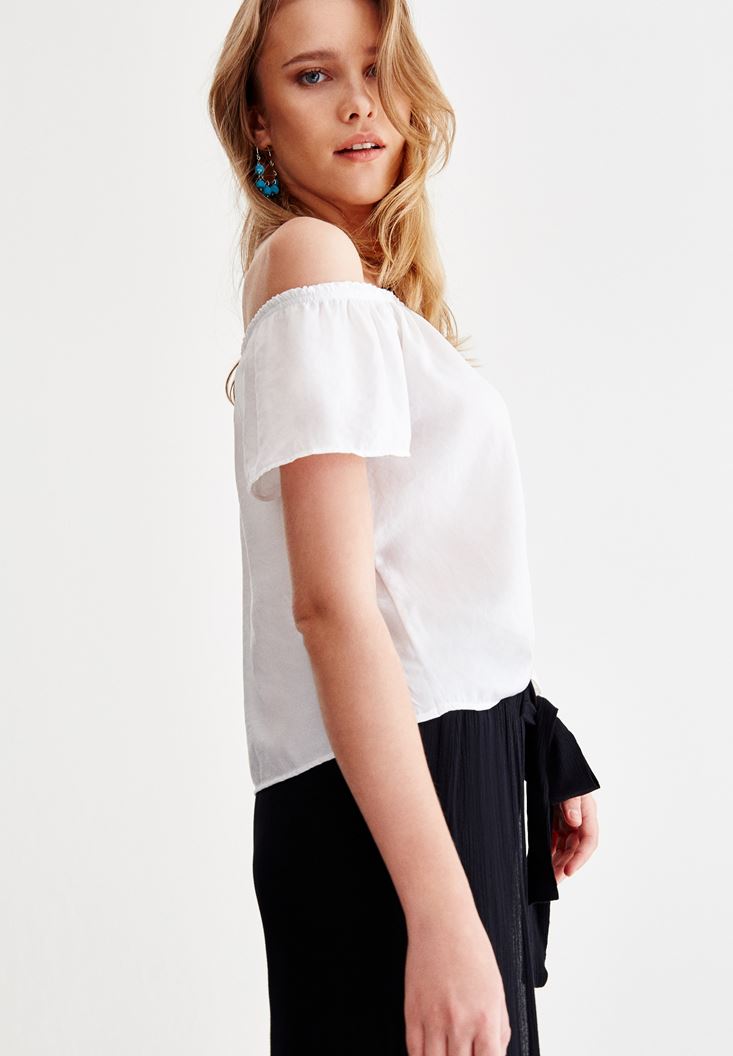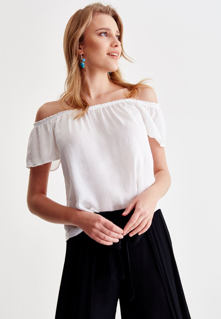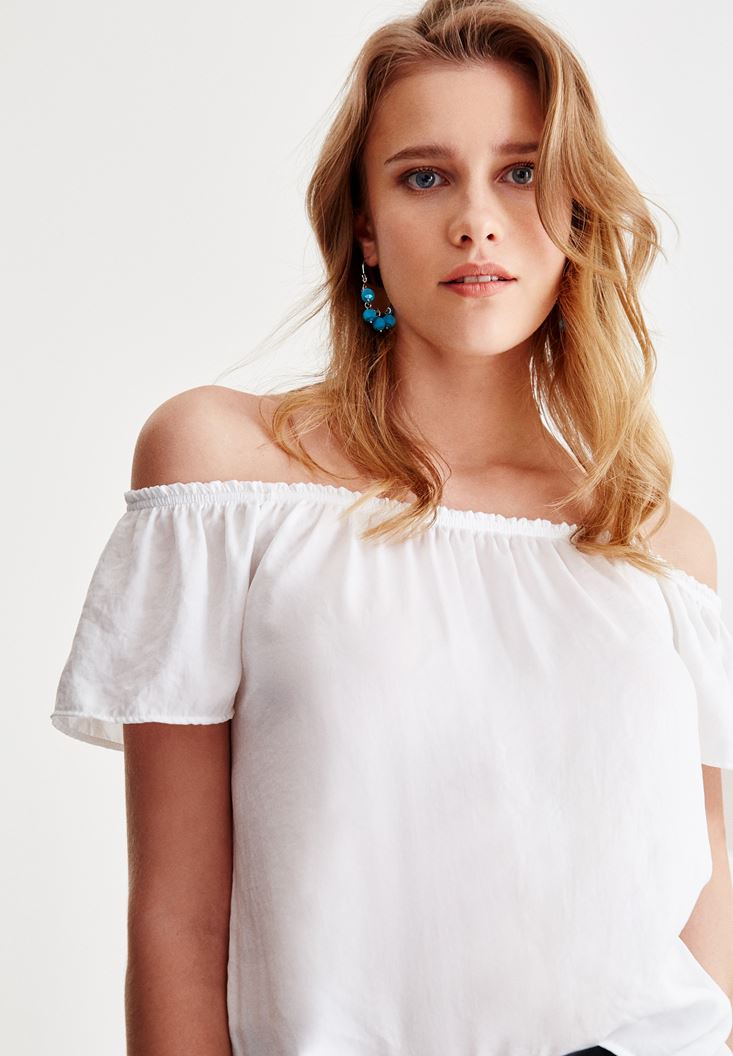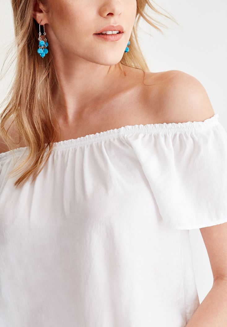 Beyaz Düşük Omuz Detaylı Bluz