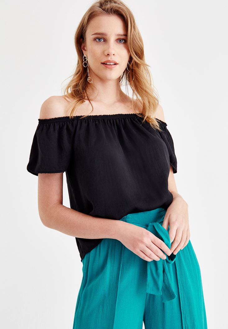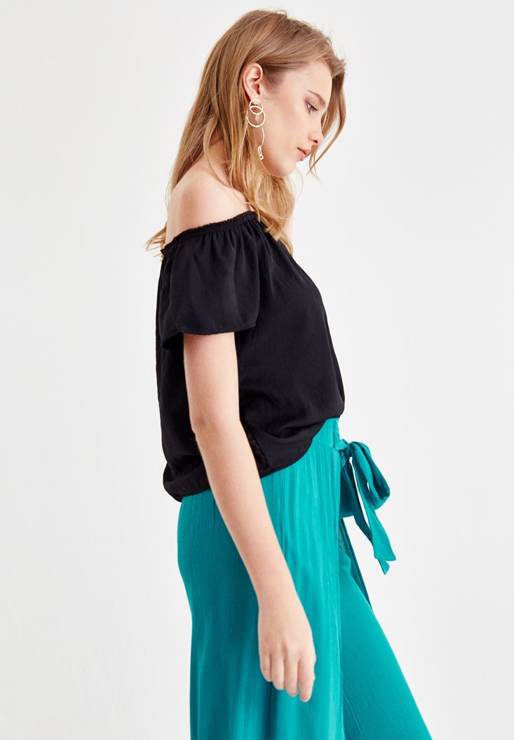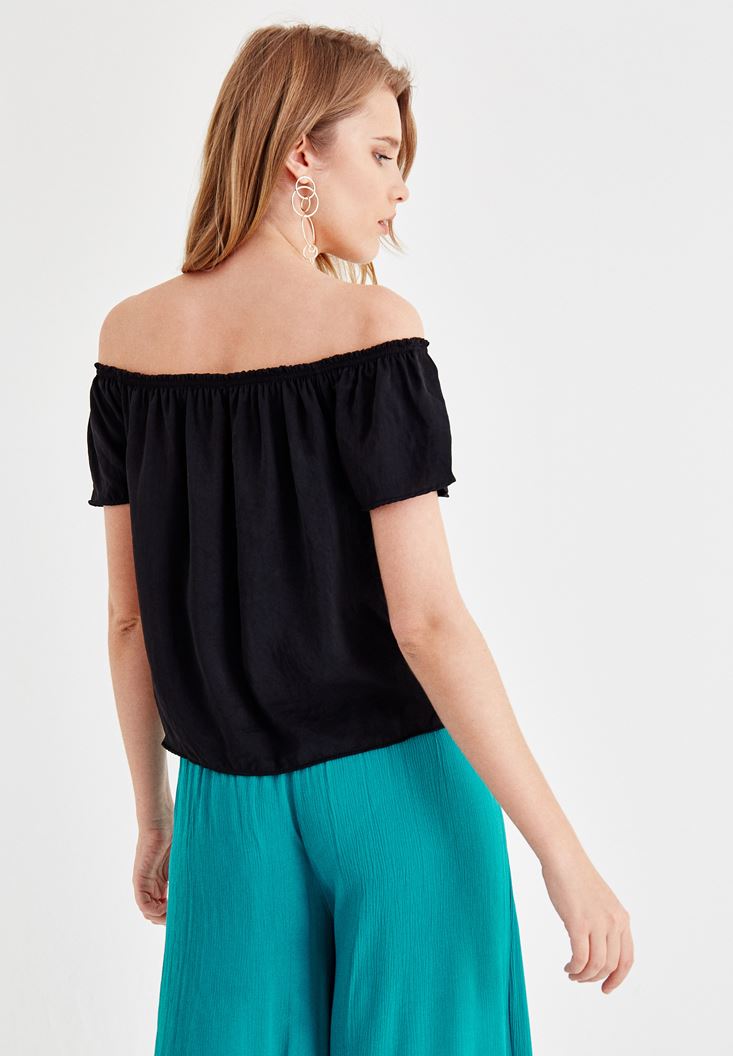 • Bayan Siyah Düşük Omuz Detaylı Bluz