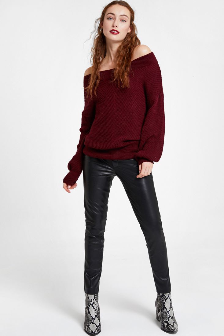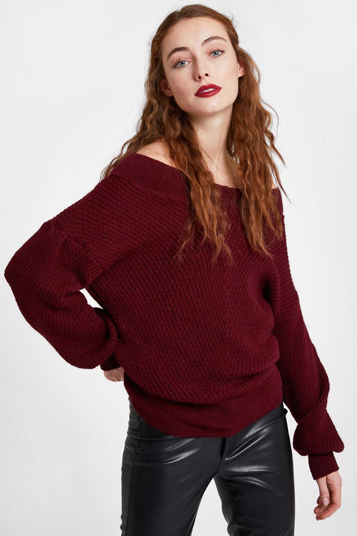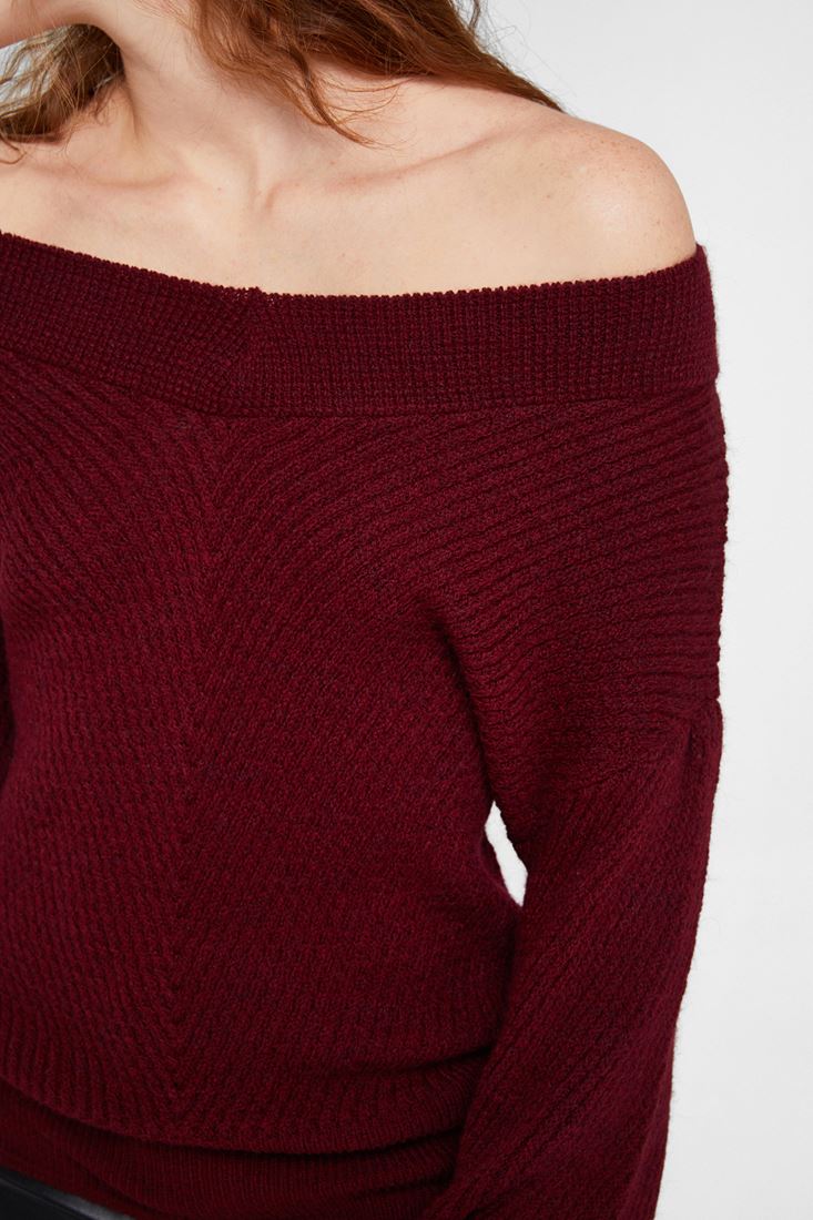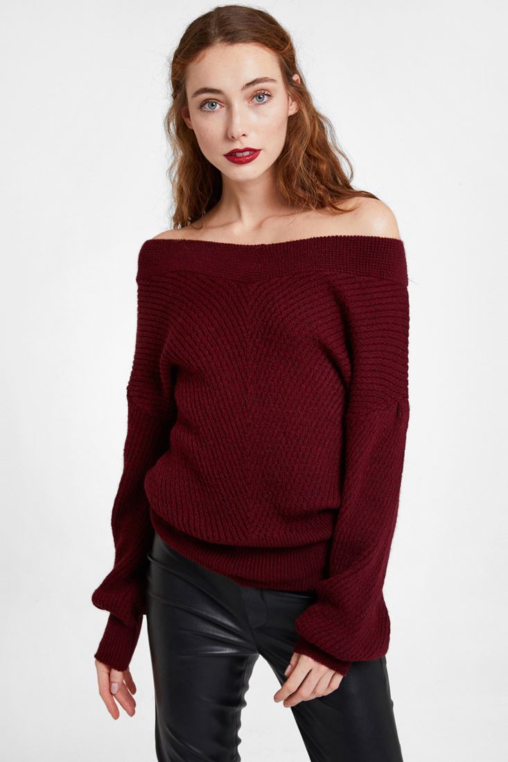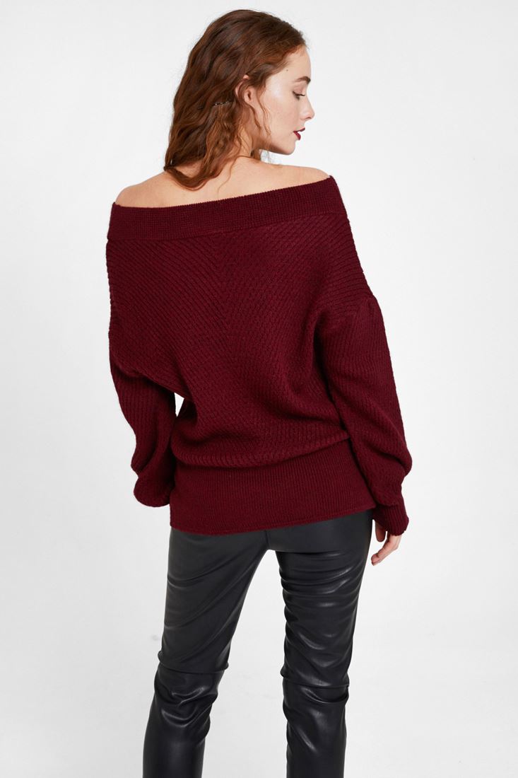• Bayan Bordo Düşük Omuz Triko Kazak