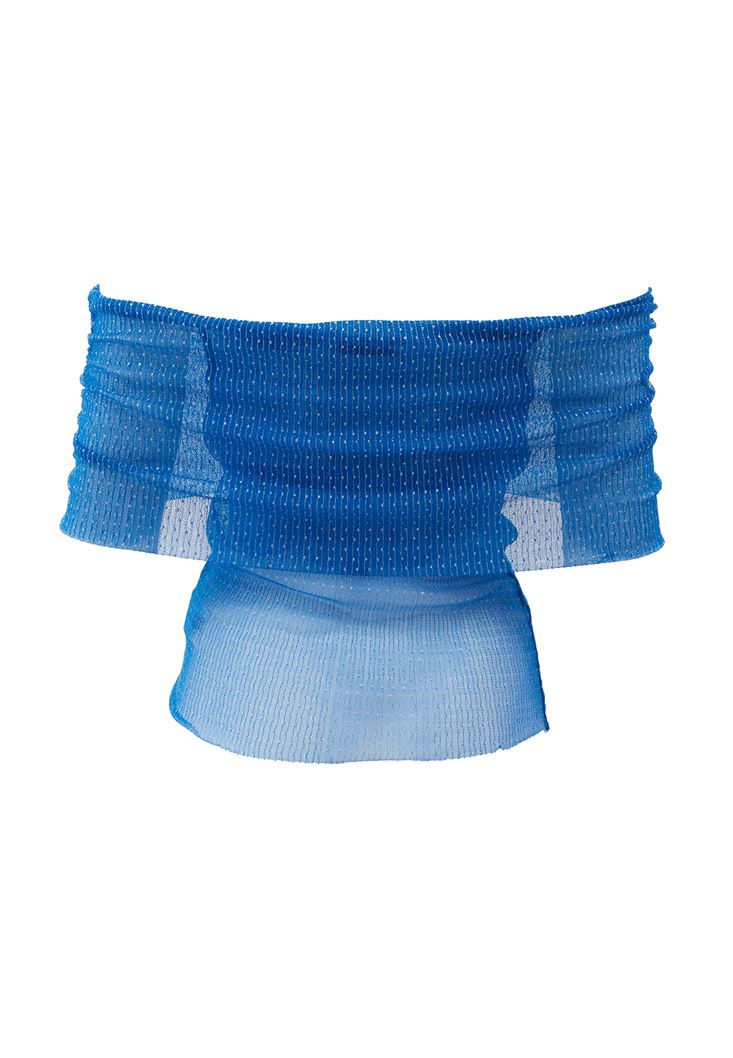 Mavi Düşük Omuz Tül Bluz