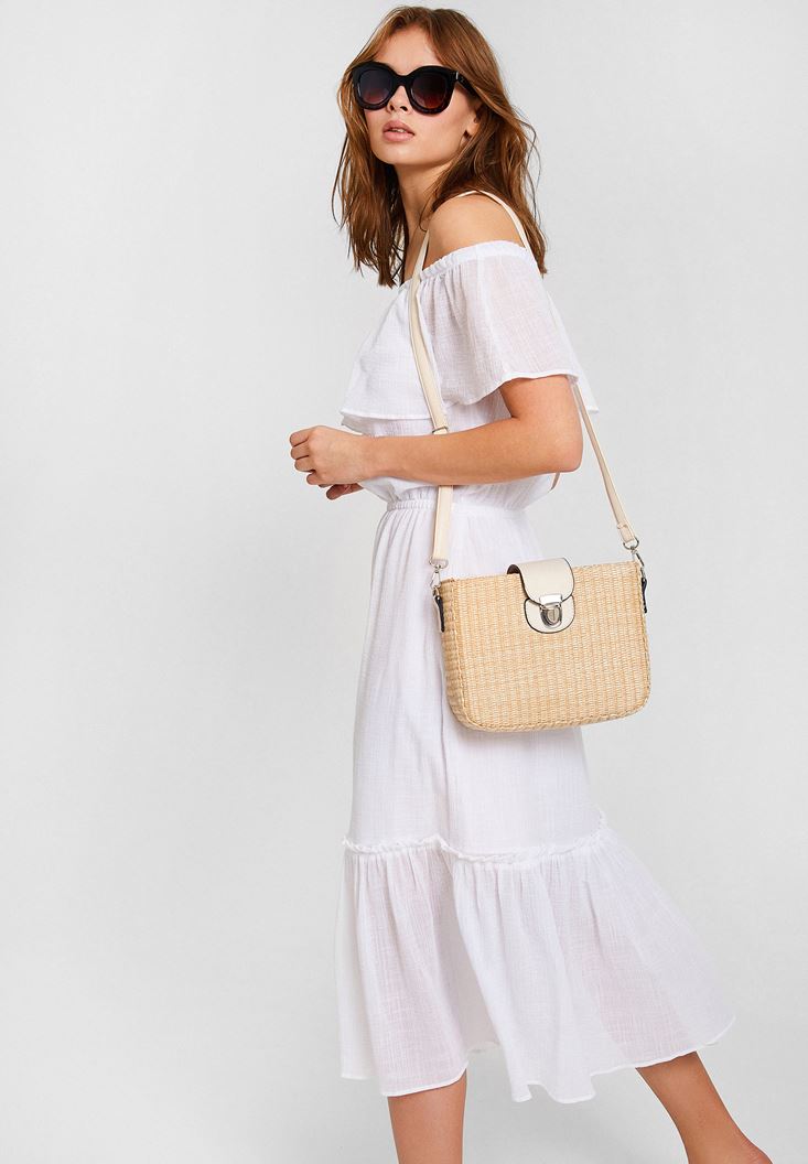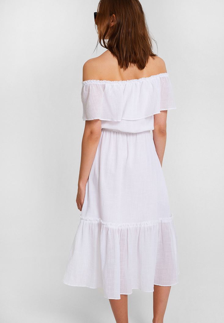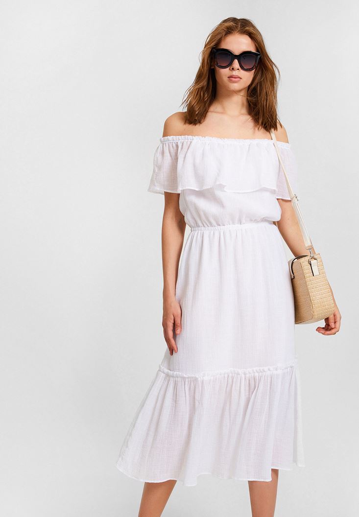 • Bayan Beyaz Düşük Omuzlu Uzun Elbise