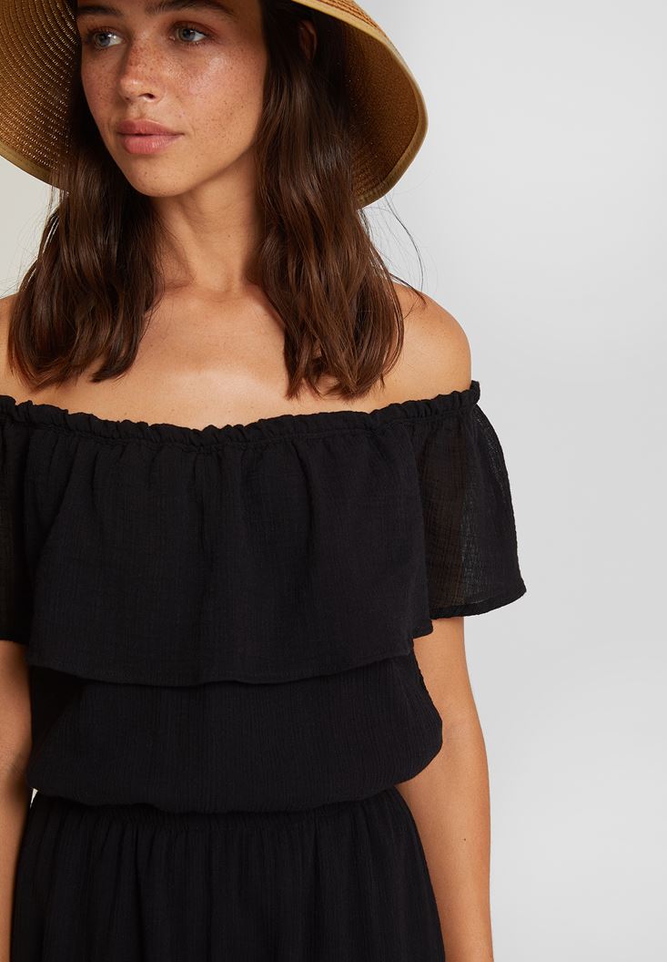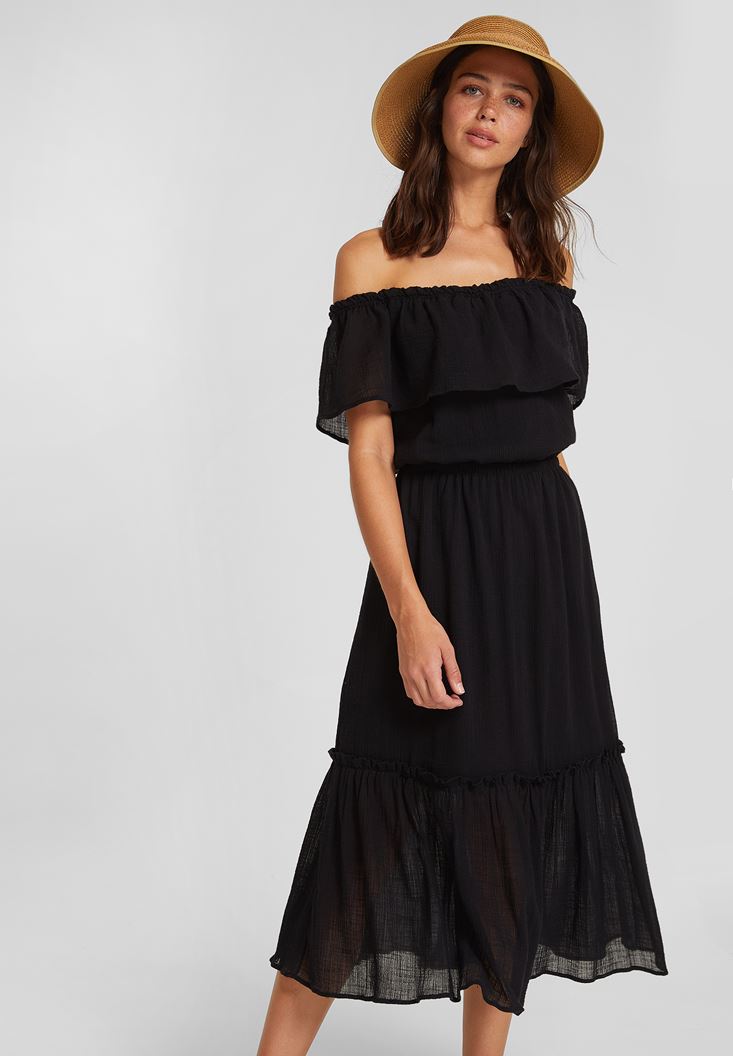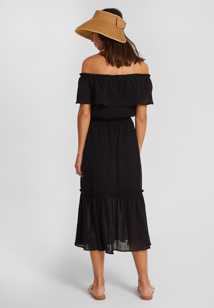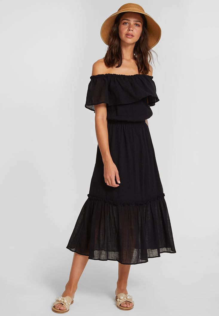• Bayan Siyah Düşük Omuzlu Uzun Elbise