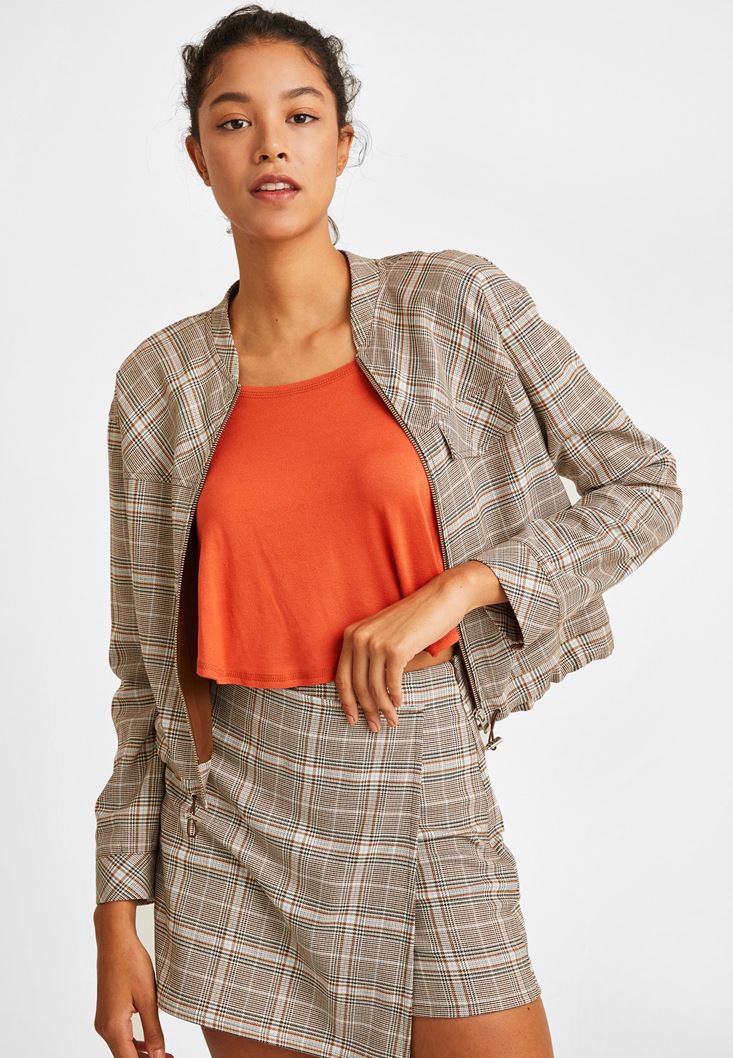 Çok Renkli Ekose Desenli Bomber Ceket
